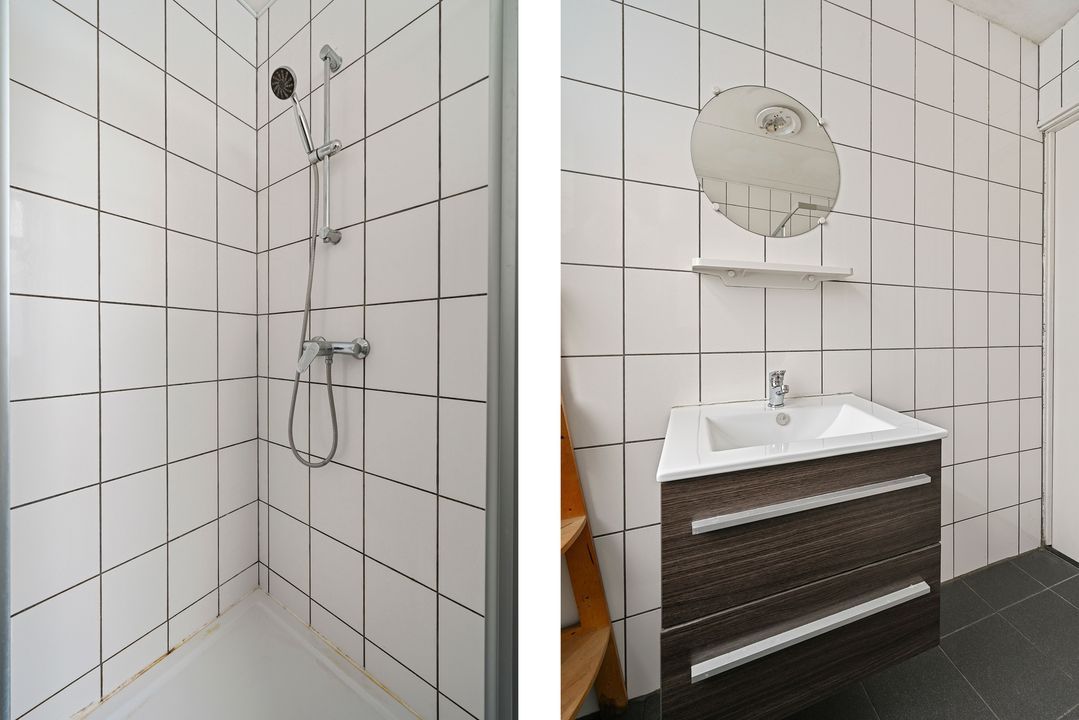 De keuken is praktisch ingericht en voorzien van gaskookplaat en een oven. Vanuit de keuken is de badkamer met douche, wastafelmeubel en aansluiting voor de wasmachine/droger bereikbaar. Tevens hier de Cv opstelplaats.