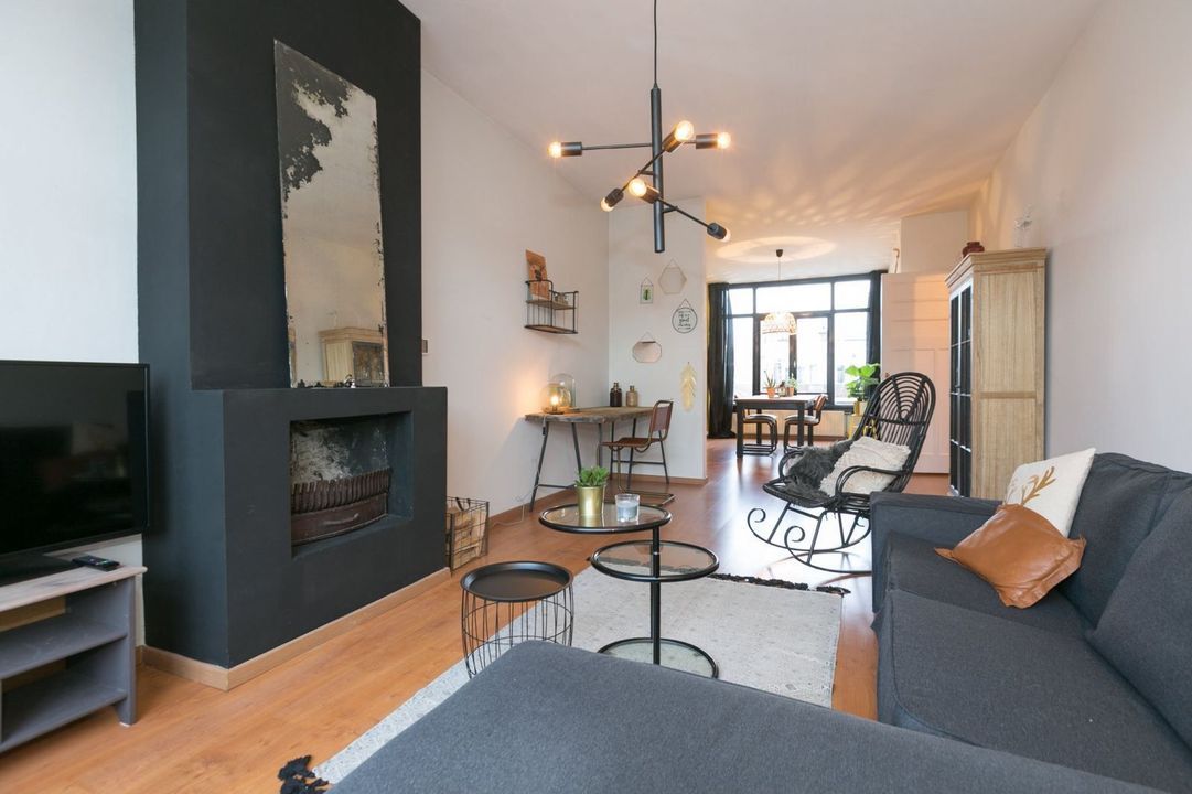 • Woon-/eetkamer: royale kamer over de gehele lengte van het appartement, met hoge plafonds, veel lichtinval en een