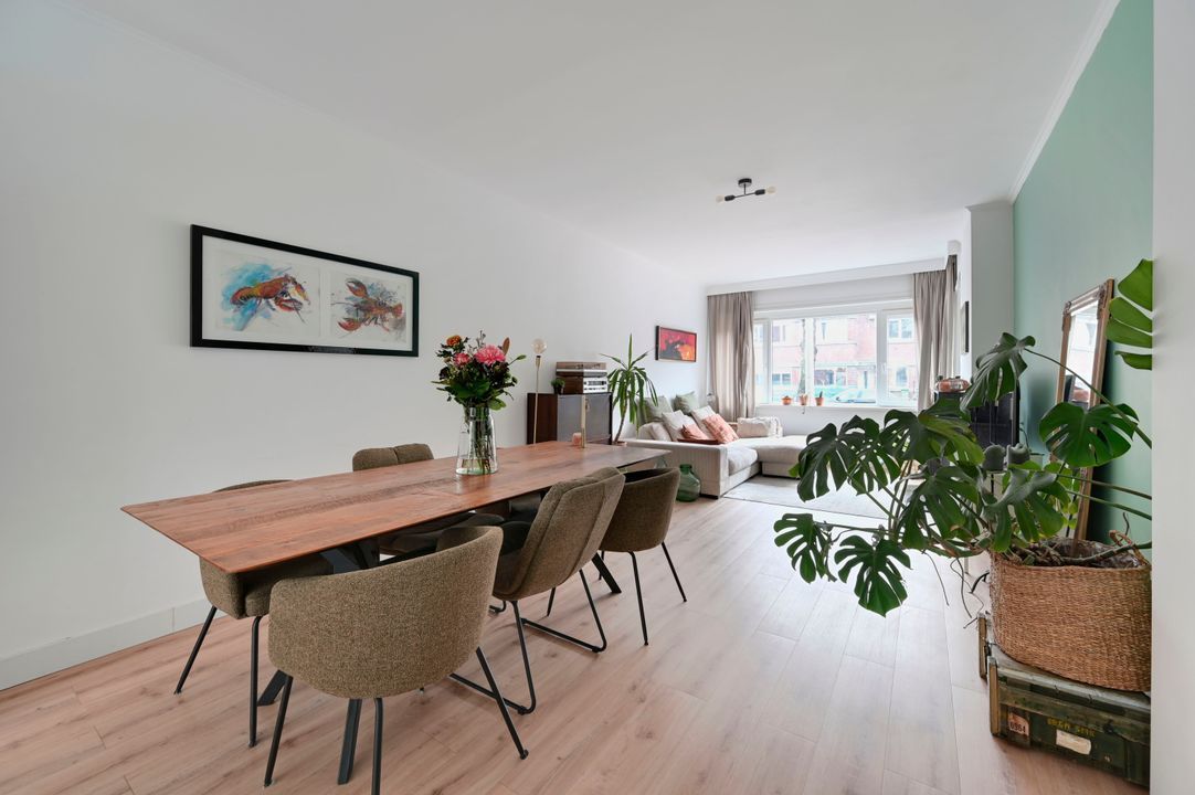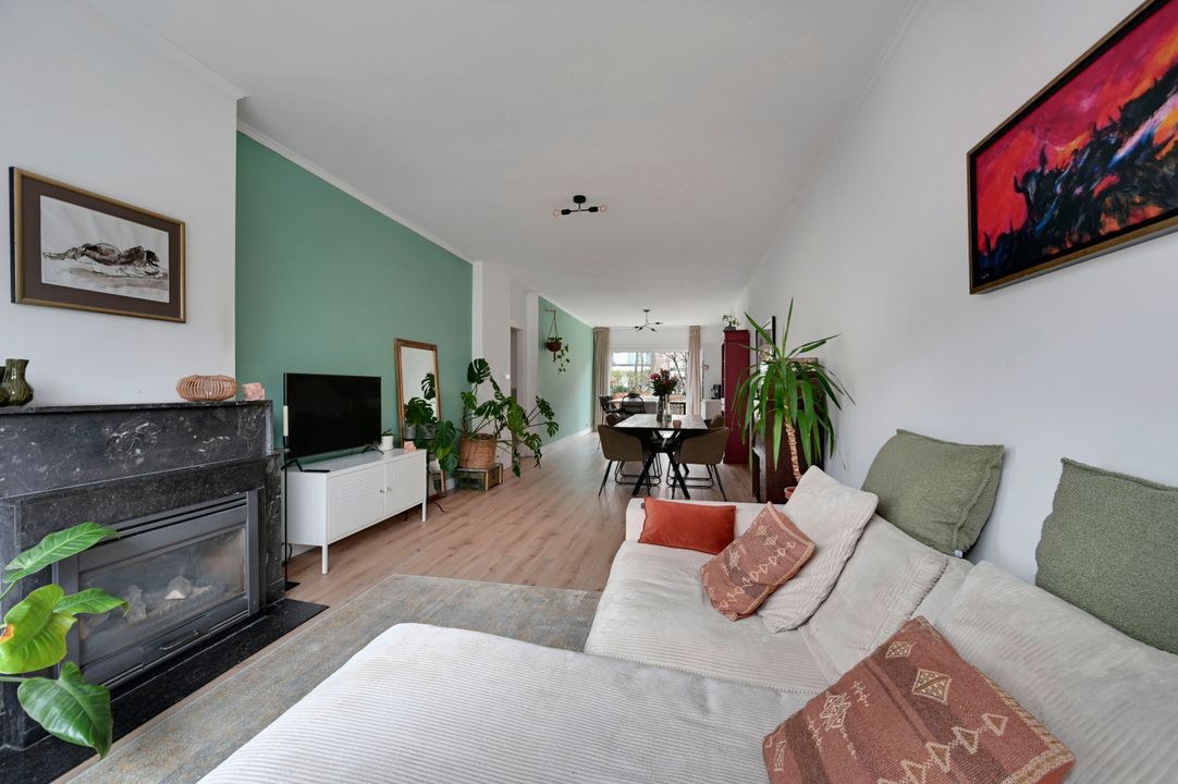 De royale woonkamer (ca. 29,8 m²) kenmerkt zich door veel lichtinval en een prettig uitzicht op de tuin. De woonkamer is voorzien van een PVC vloer, vloerverwarming en een sfeervolle gashaard. Dankzij de ruime afmetingen is er volop plaats voor een comfortabele zithoek en een grote eettafel.