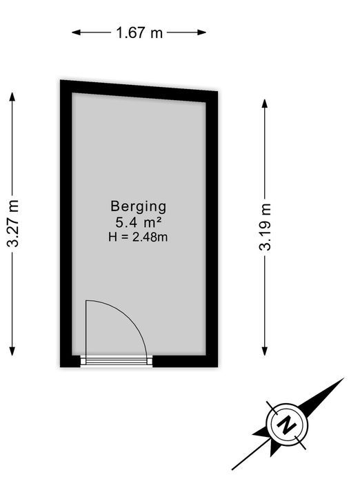 Privéberging van ca. 5,4 m² met een hoogte van 2,48 m (zie meetrapport) voor fietsen en opslag.