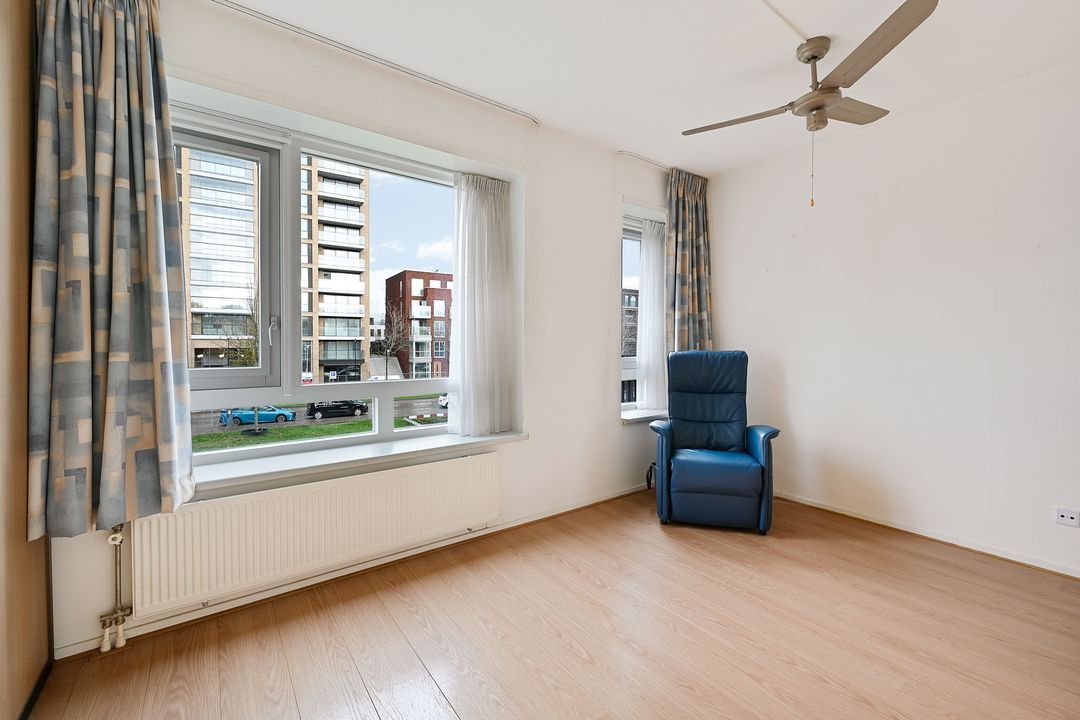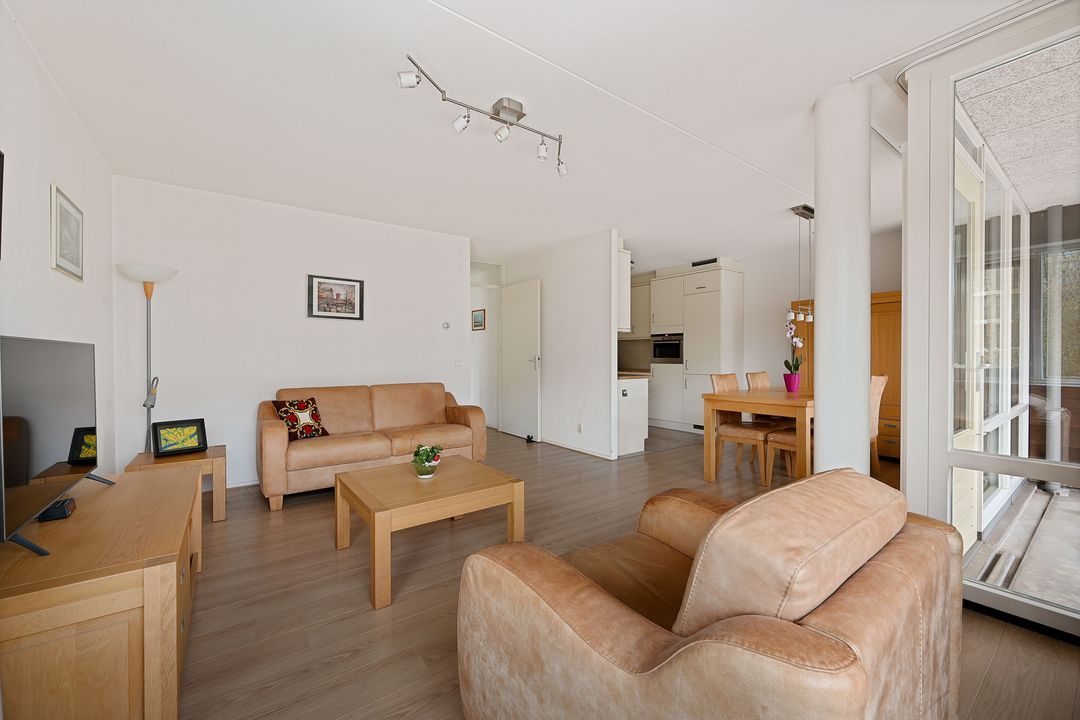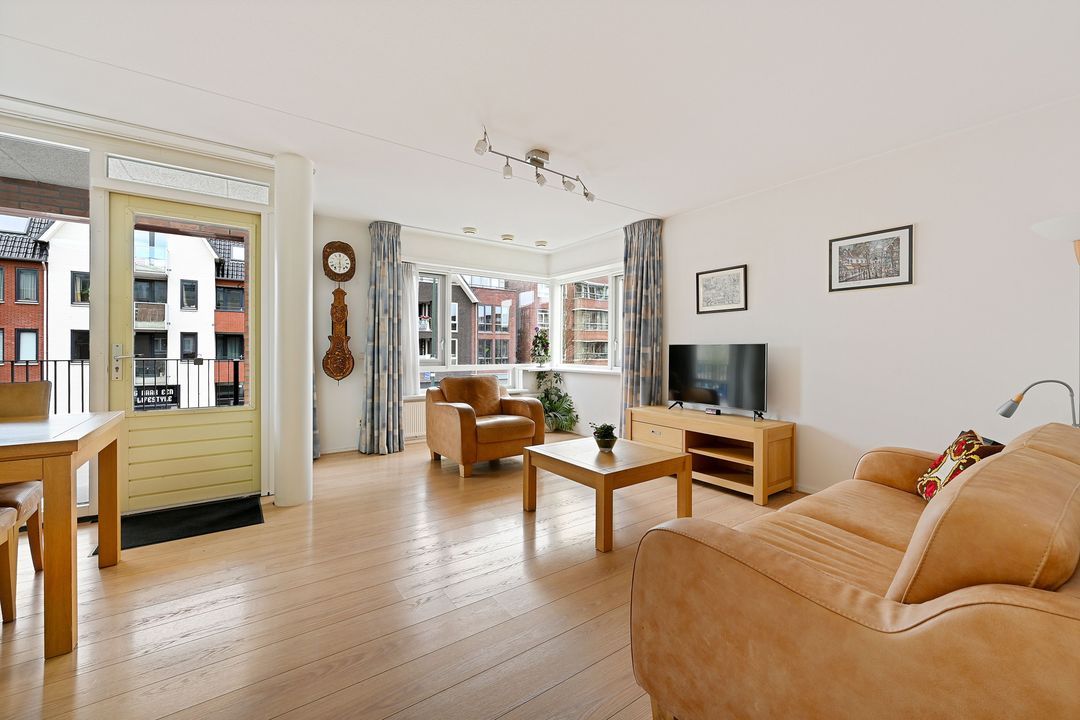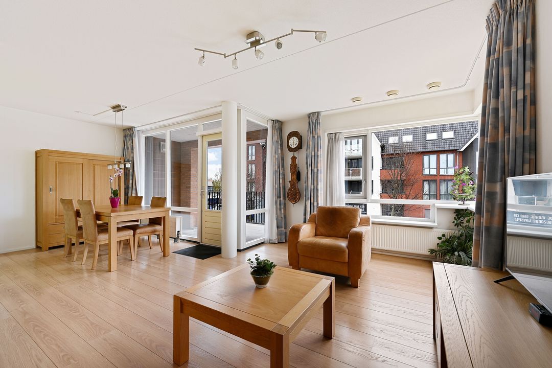 De lichte en brede woonkamer (ca. 19 m², zie meetrapport) heeft grote ramen aan twee zijden, wat zorgt voor een prettige en uitnodigende sfeer. Vanuit de woonkamer is er toegang tot het balkon.