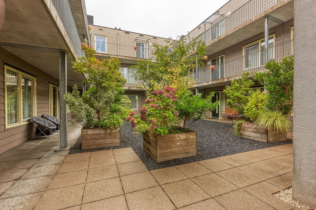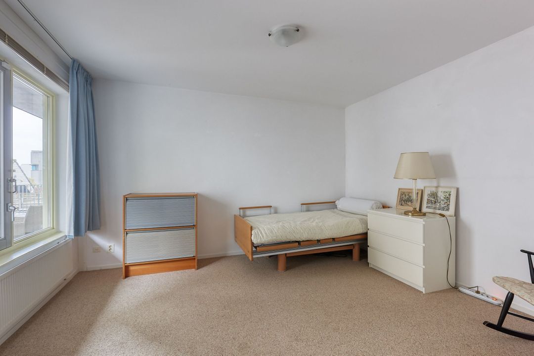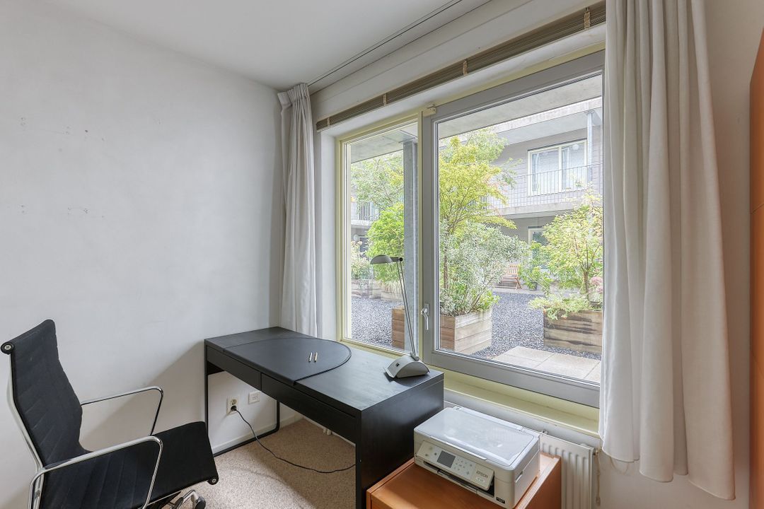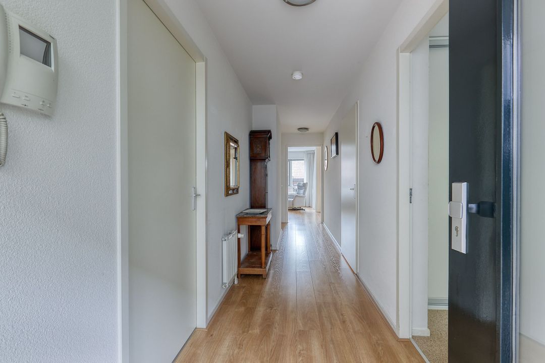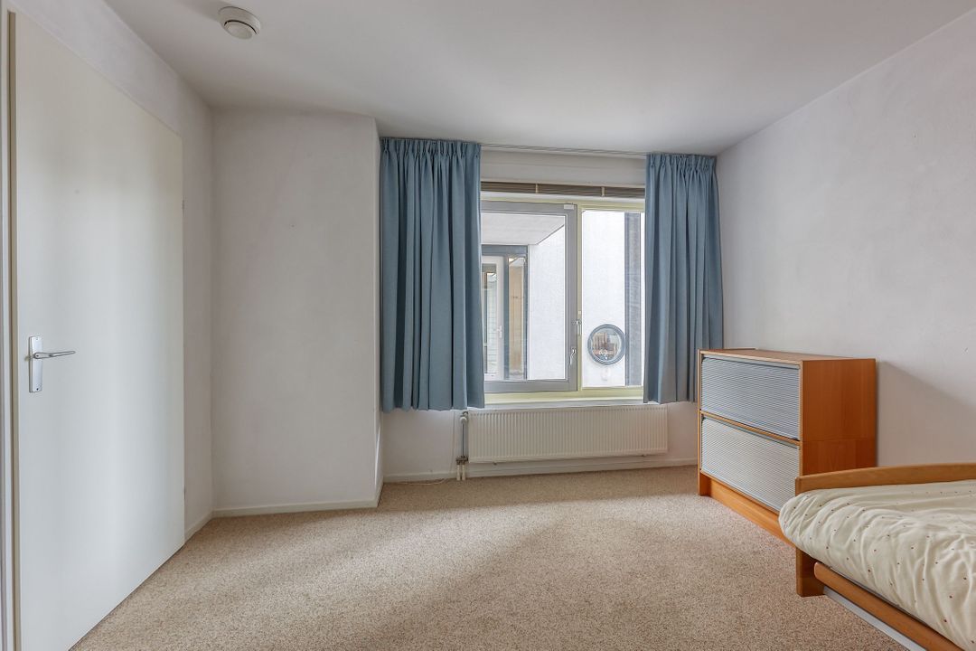 Via de afgesloten flatentree aan zowel de voor- als achterzijde bereik je de lift en het trappenhuis naar de eerste verdieping, waar zich de royale buitenplaats (binnentuin) bevindt. Bij binnenkomst in het appartement stap je in een ruime hal met videofoon. Aan de buitenplaatszijde liggen twee grote slaapkamers, respectievelijk ca. 4.06 x 3.55 en 3.30 x 2.88 meter (een van de kamers heeft een vaste kastenwand). Naast de slaapkamers bevindt zich een tussenkamer, die dienst doet als bergruimte en voorzien is van mechanische ventilatie en de CV-opstelling. Het moderne toilet is uitgerust met een fontein.