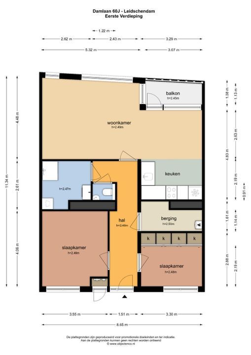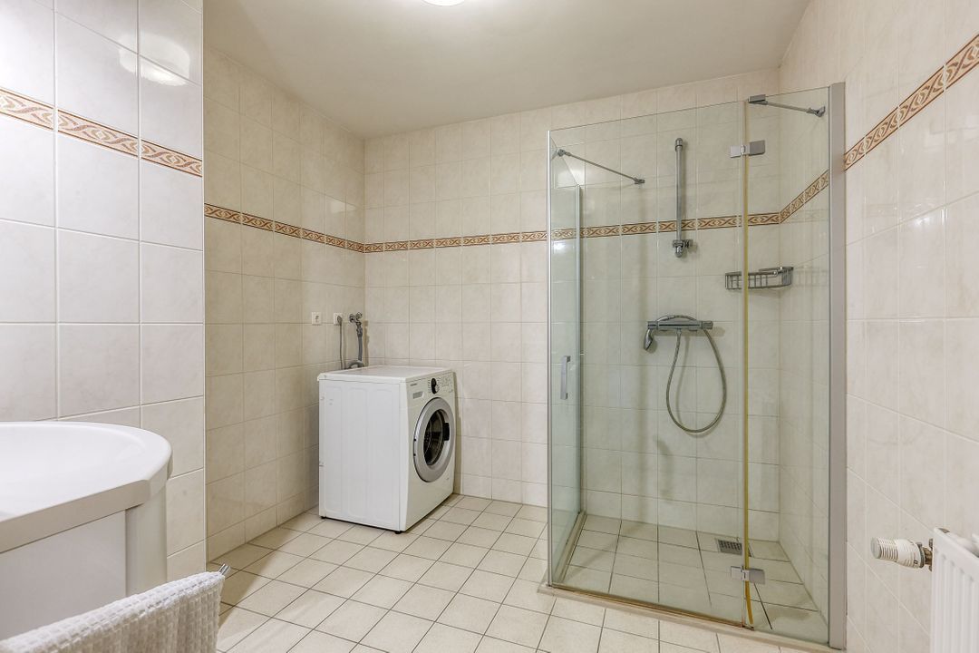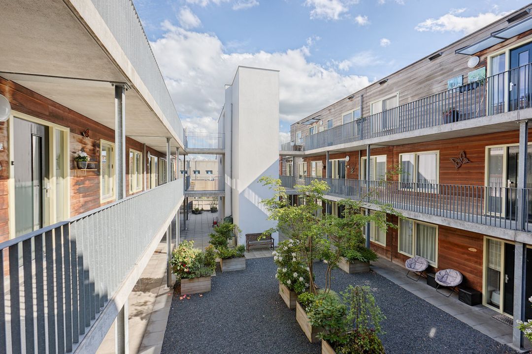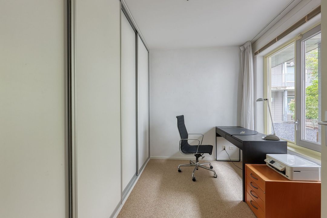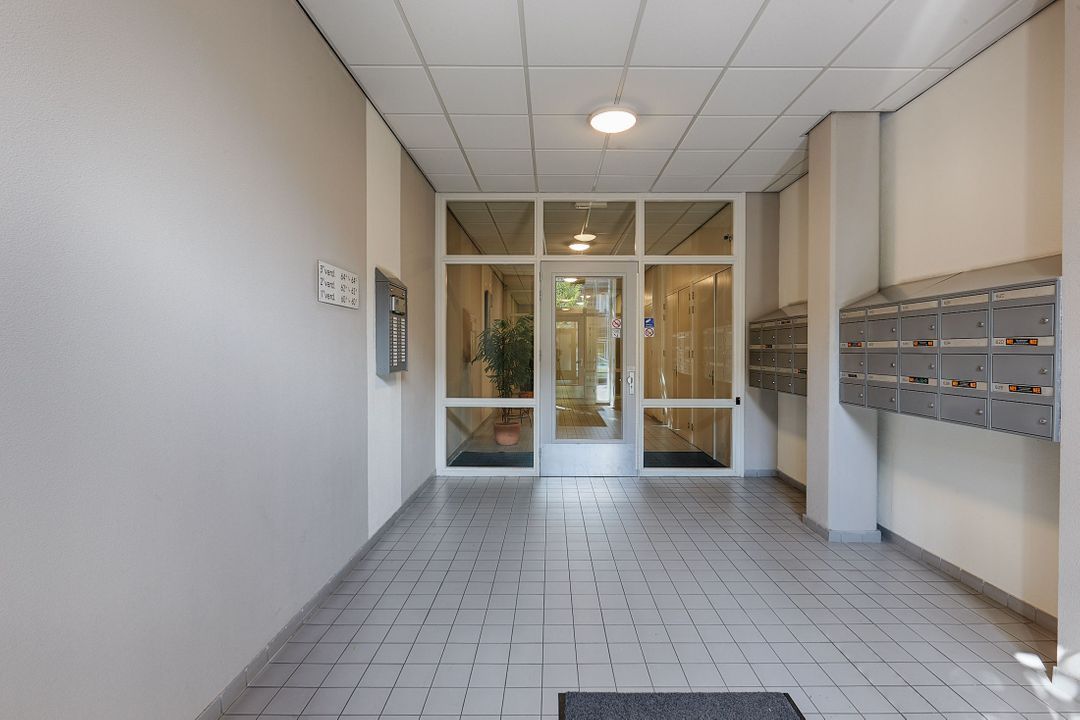 Via de afgesloten flatentree aan zowel de voor- als achterzijde bereik je de lift en het trappenhuis naar de eerste verdieping, waar zich de royale buitenplaats (binnentuin) bevindt. Bij binnenkomst in het appartement stap je in een ruime hal met videofoon. Aan de buitenplaatszijde liggen twee grote slaapkamers, respectievelijk ca. 4.06 x 3.55 en 3.30 x 2.88 meter (een van de kamers heeft een vaste kastenwand). Naast de slaapkamers bevindt zich een tussenkamer, die dienst doet als bergruimte en voorzien is van mechanische ventilatie en de CV-opstelling. Het moderne toilet is uitgerust met een fontein.
