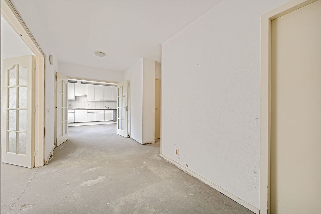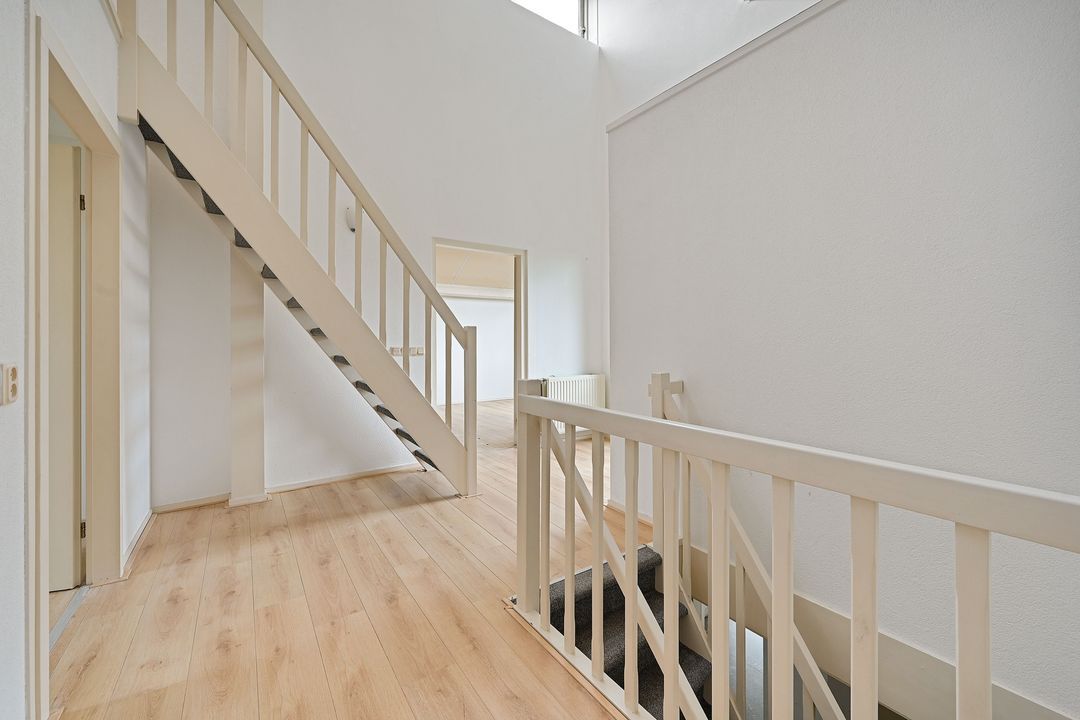 Ruime overloop met toegang tot twee slaapkamers, badkamer en balkon. De hal heeft een hoog plafond met licht toetreding.