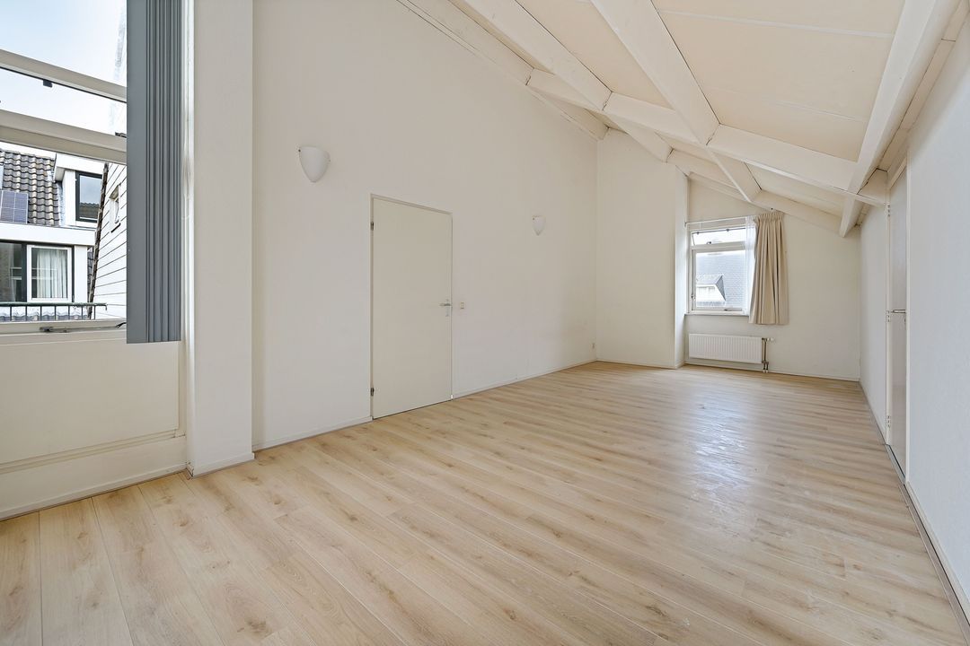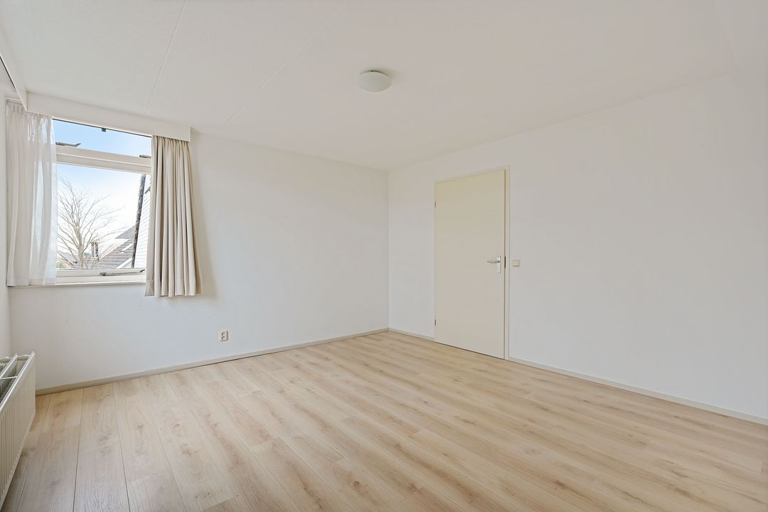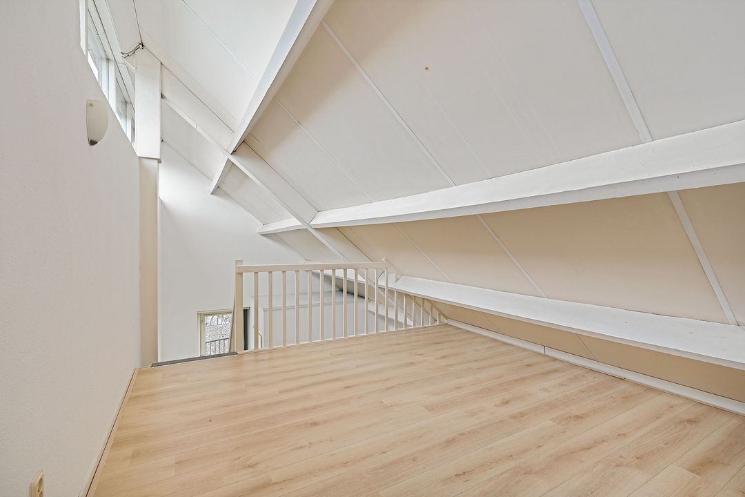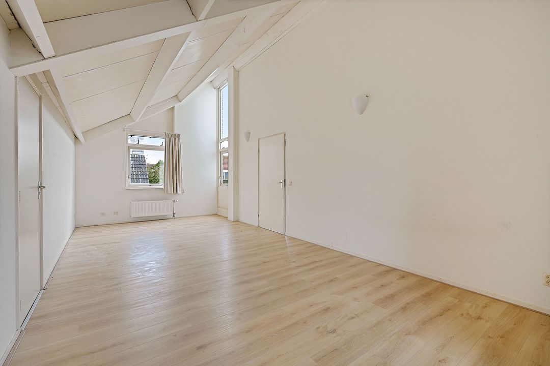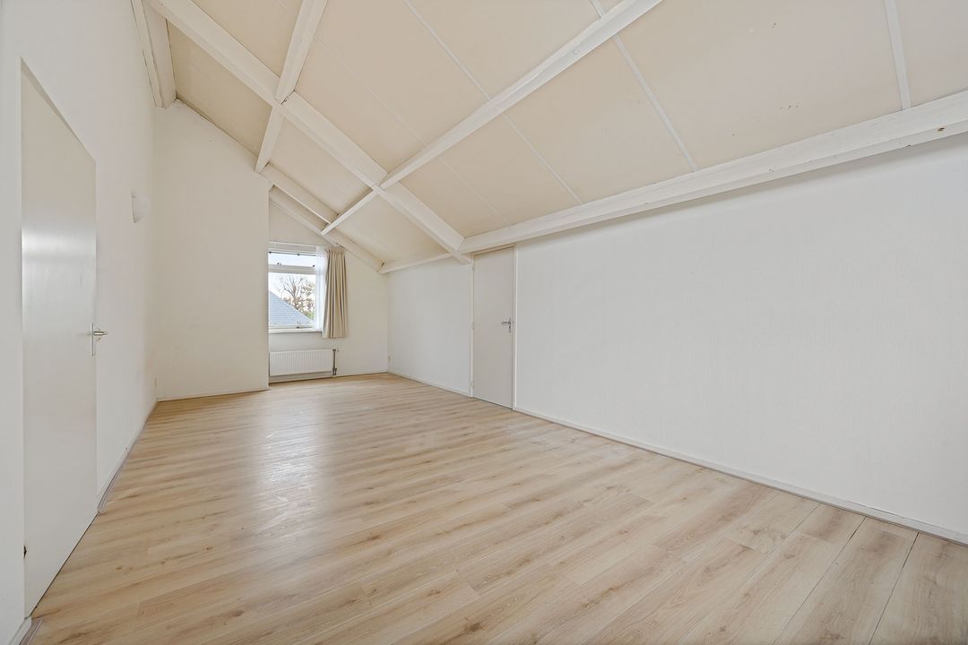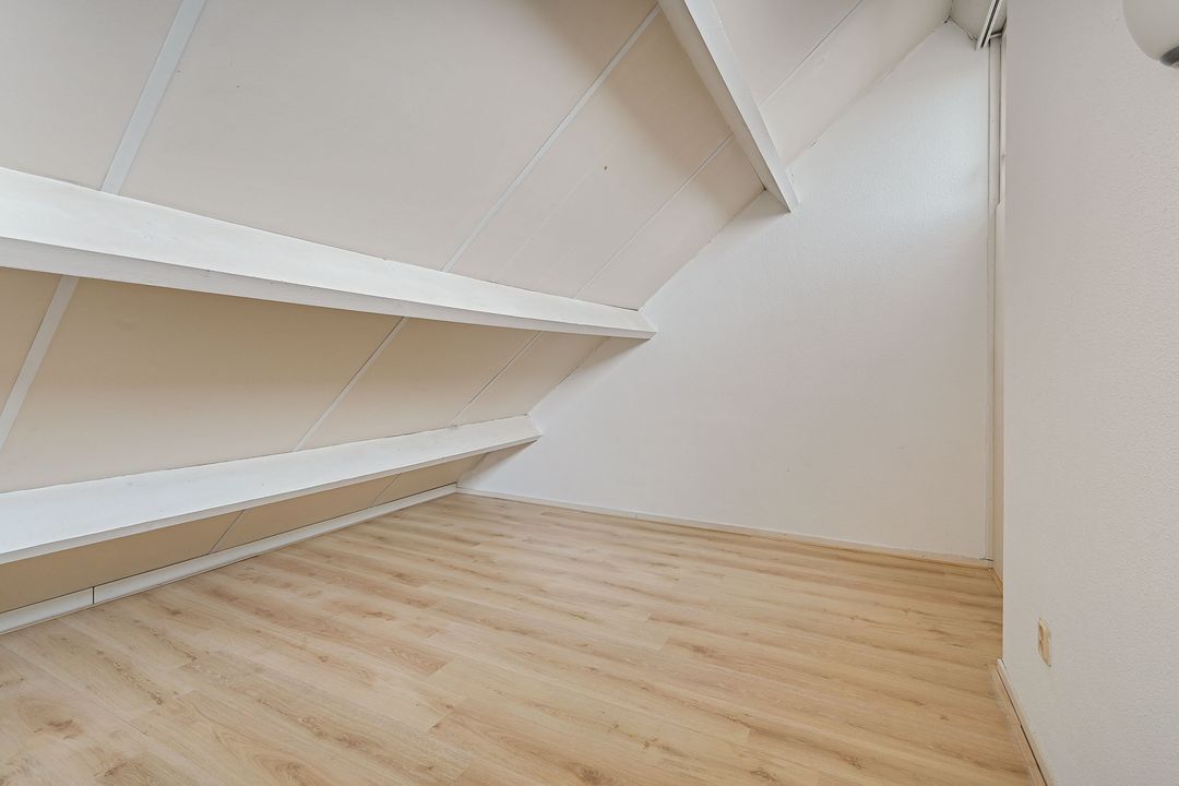 De aan zijkant van de woning gelegen grote slaapkamer is ca. 27.3 m2 deze slaapkamer loopt over de gehele diepte van de woning en is ca. 7.90 x 3.46, deze kamer is makkelijk op te splitsen in 2 kamers en er kan eventueel nog een dakkapel geplaatst worden (afhankelijk van benodigde vergunningen). Twee opbergruimtes waarvan een makkelijk te betrekken bij de slaapkamer. Slaapkamer aan de voorzijde ca. 19.5 m2.