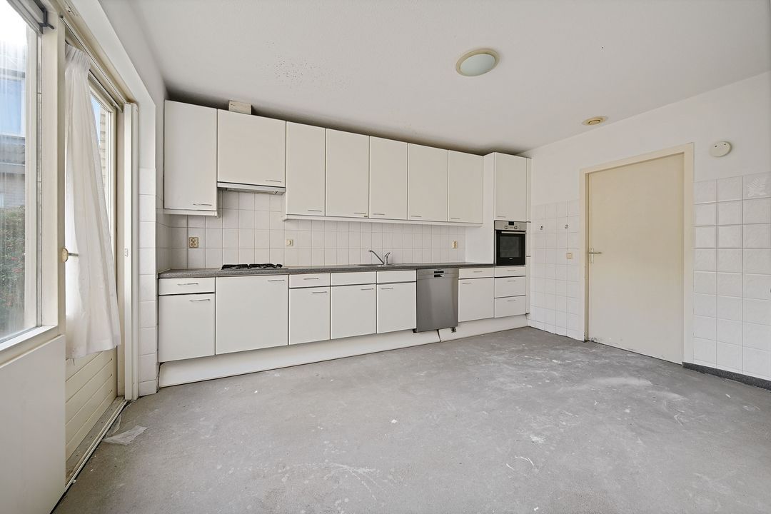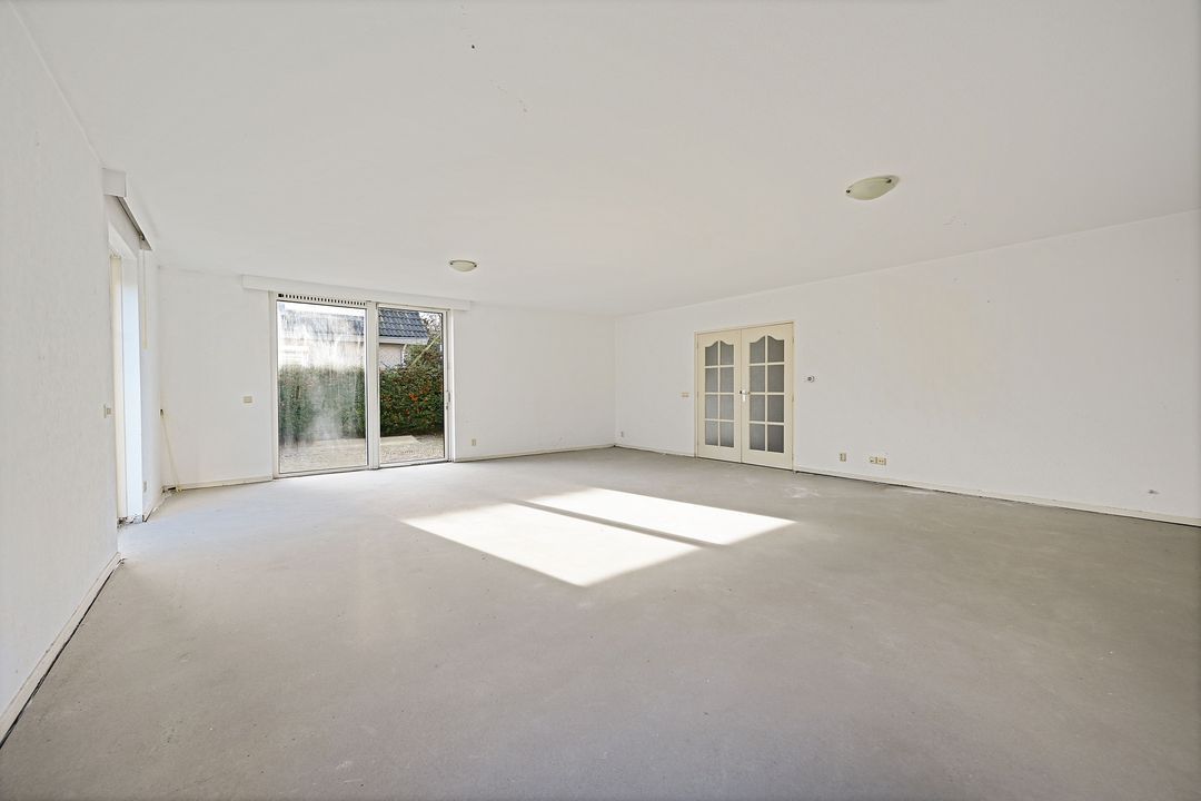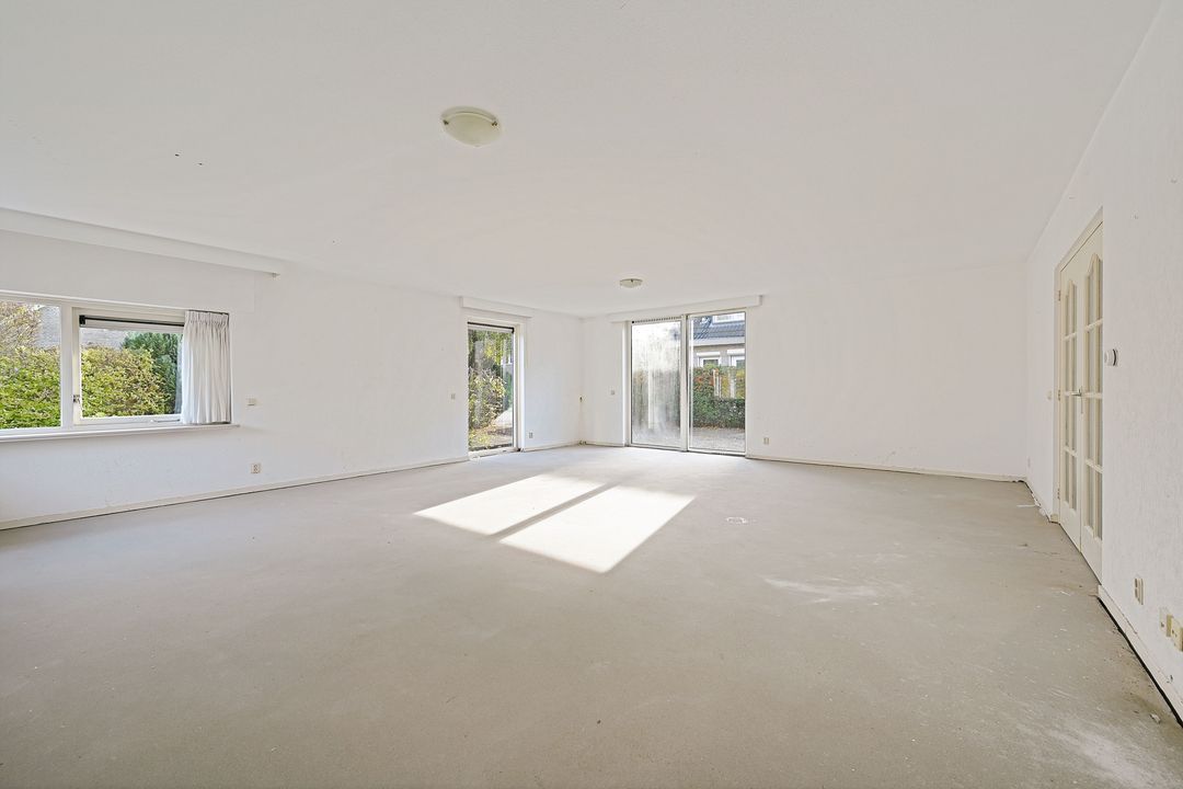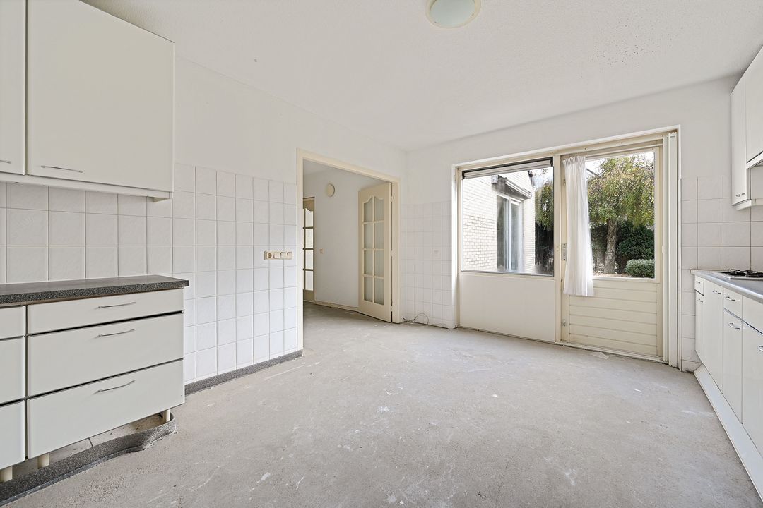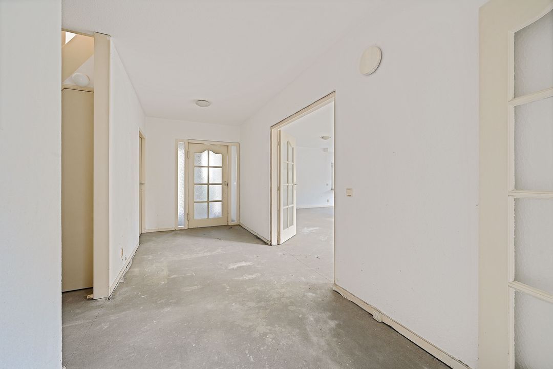 Voortuin, vestibule met meterkast en garderoberuimte, ruime hal met mode3rne, volledig vernieuwde toiletruimte en toegang tot de riante woonkamer van ca. 52 m2 met uitzicht op de oprit en voortuin. Royale keukenruimte van ca. 16.3 m2 voorzien van diverse inbouwapparatuur, bijkeuken met cv- opstelplaats, wasmachine en droger. Verwarmde garage met elektrische deur.