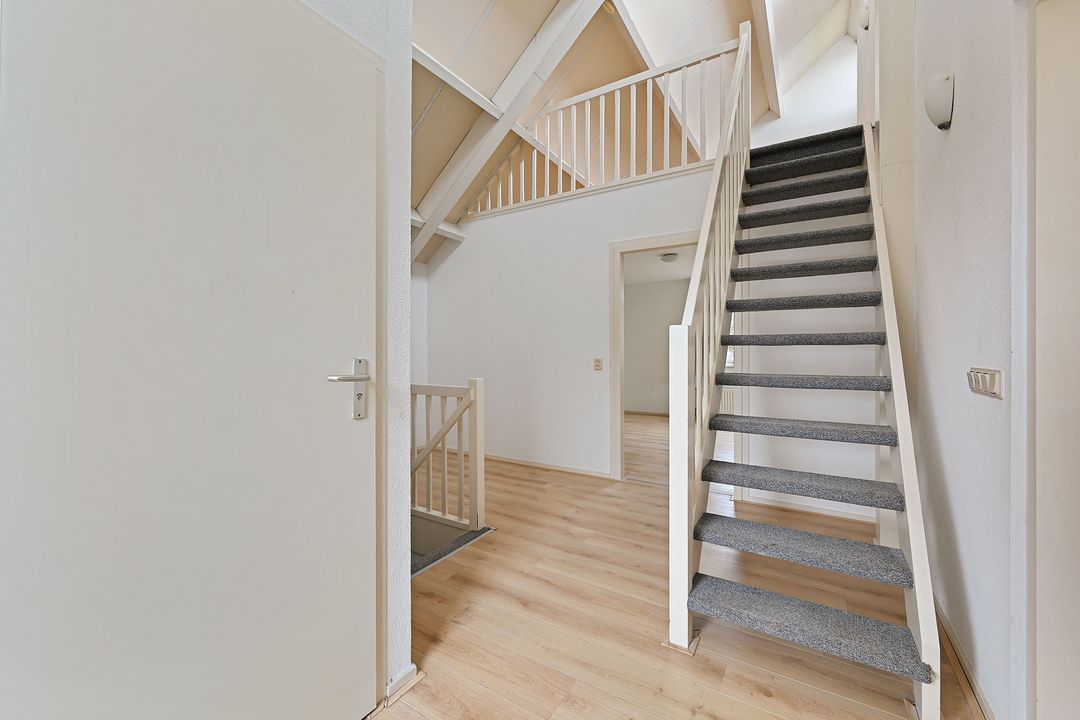 De overloop biedt eveneens toegang tot het ruime Zuid-West gelegen balkon en middels een vaste trap toegang tot de entresol van ca. 8 m2 welke goed te gebruiken is als werkkamer of sportruimte maar ook zeker dienst kan doen als slaapkamer.