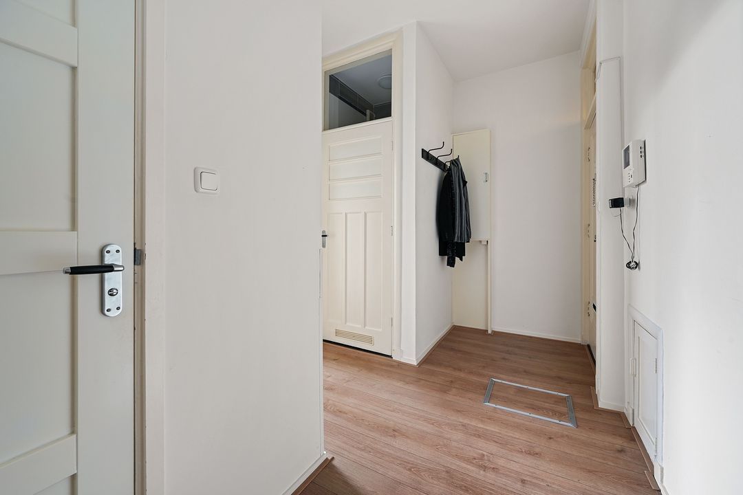 Met de portiektrap komt u op de tweede etage bij de entree van het appartement. Bij binnenkomst valt het ruimtelijke gevoel direct op, dankzij de hoge plafonds (ca. 2.90 m hoog). De hal geeft toegang tot alle andere vertrekken. In de hal bevindt zich ook de meterkast (6 groepen met ALS).
