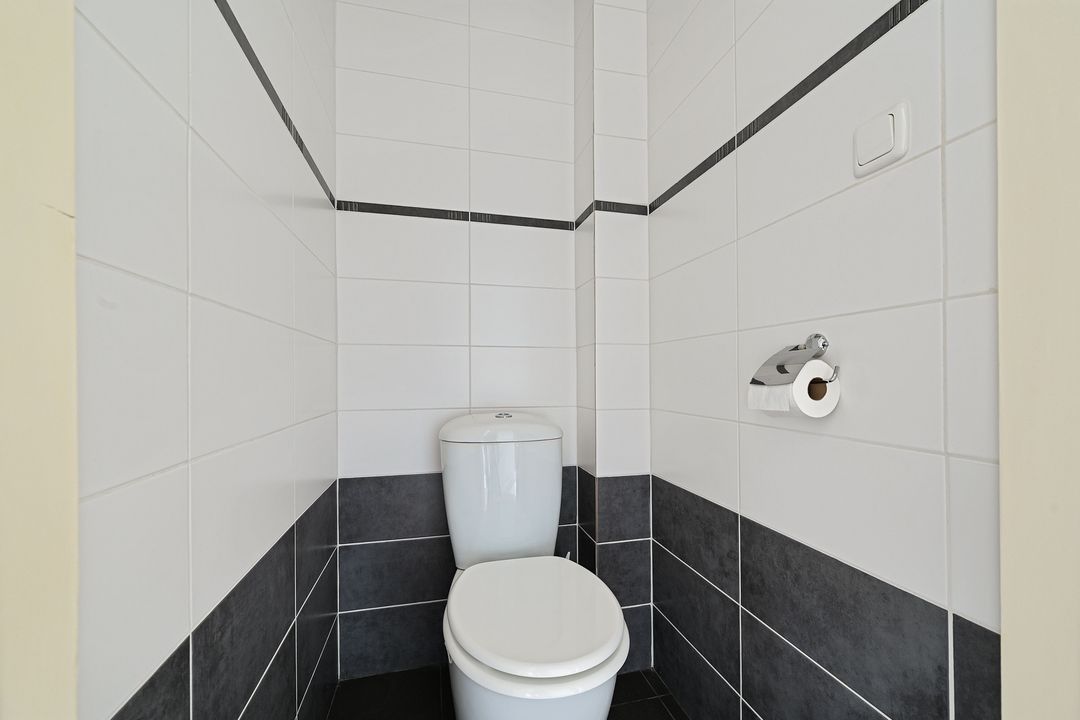 Het huis beschikt over een aparte toiletruimte in dezelfde stijl als de badkamer.