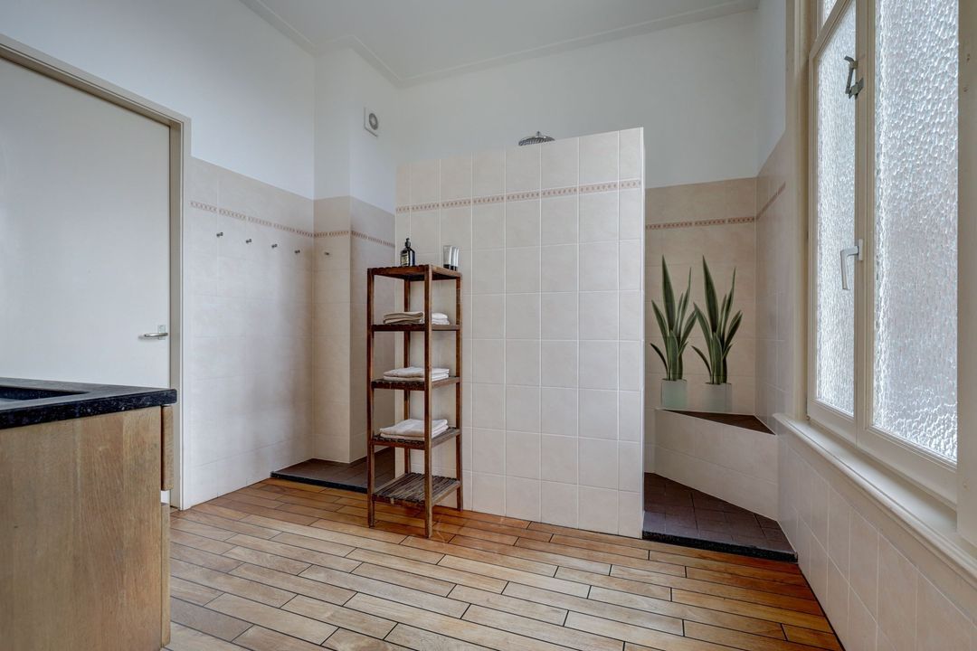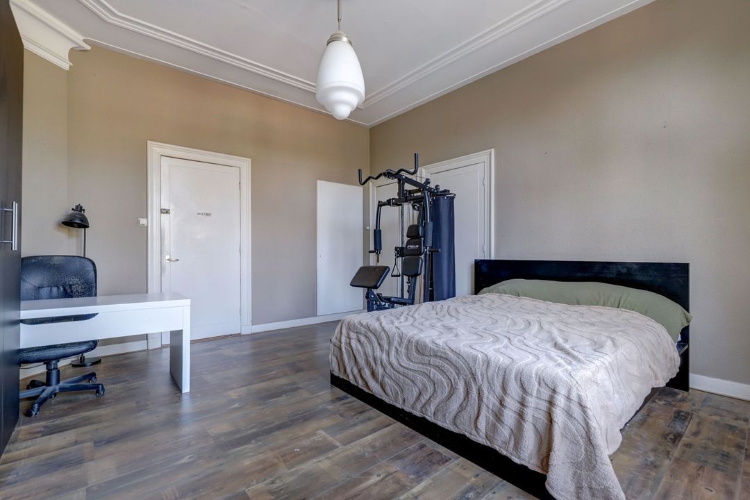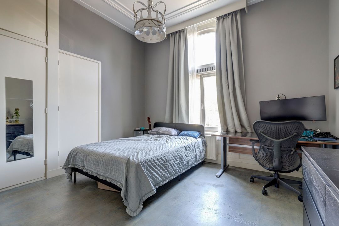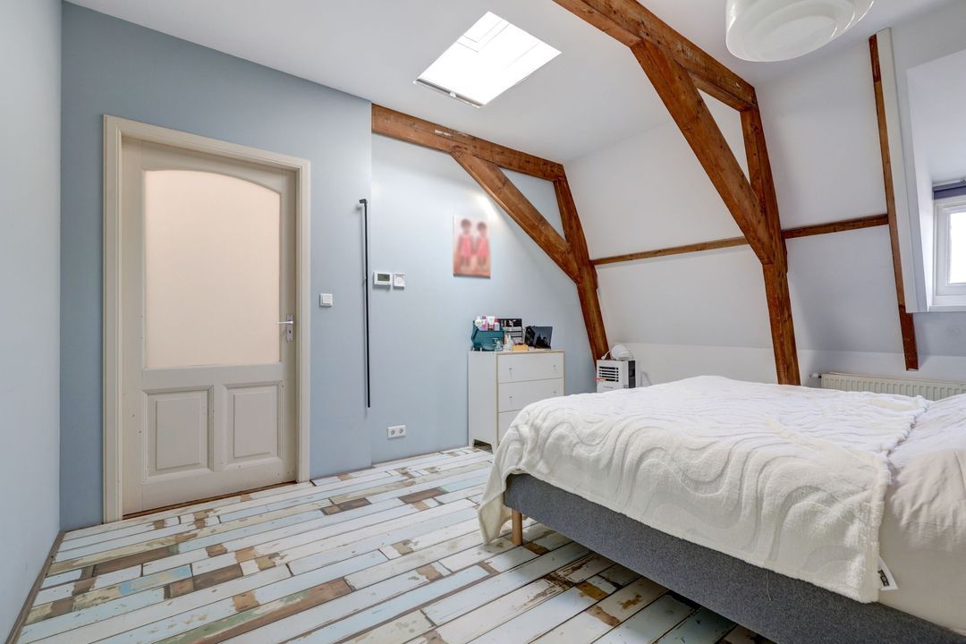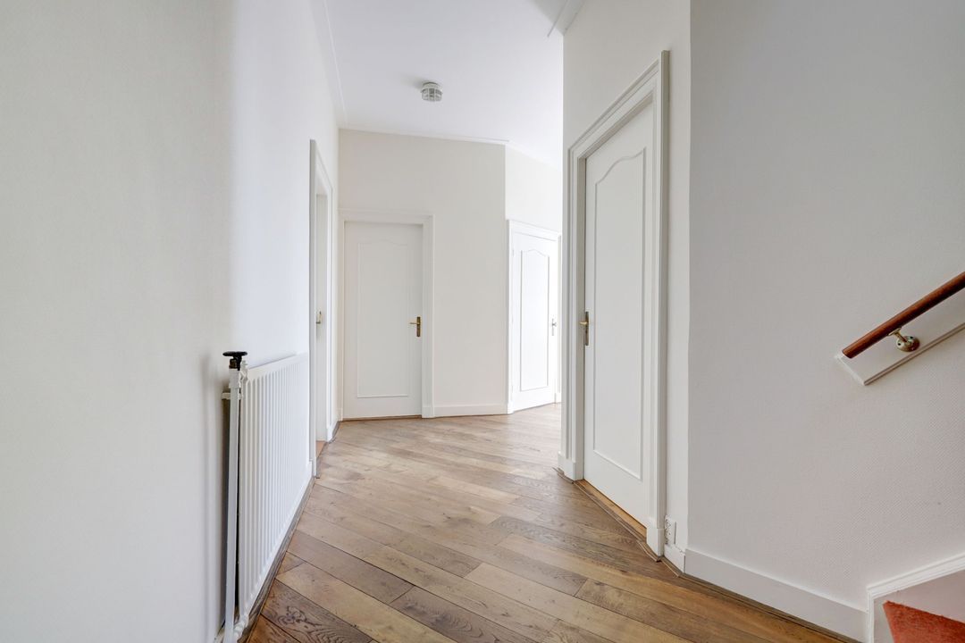 Aan de achterzijde ligt de voormalige dienstbodekamer. Verder zijn er nog twee zeer ruime slaapkamers, opnieuw met vaste kasten en fraaie lichtinval. Een tweede badkamer met dubbele wastafels, ruime douche en aansluiting voor wasmachine en droger maakt deze verdieping compleet. Via een vaste trap bereikt u het platte dak met dus een goede mogelijkheid om zonnepanelen te plaatsen.