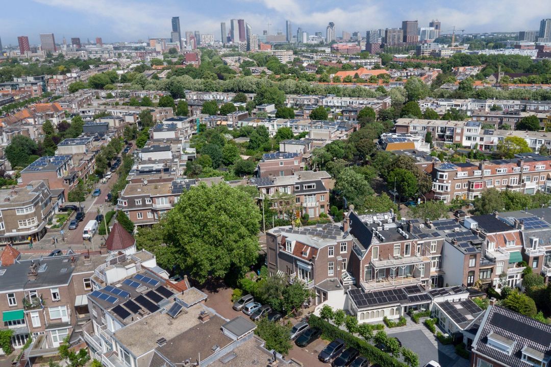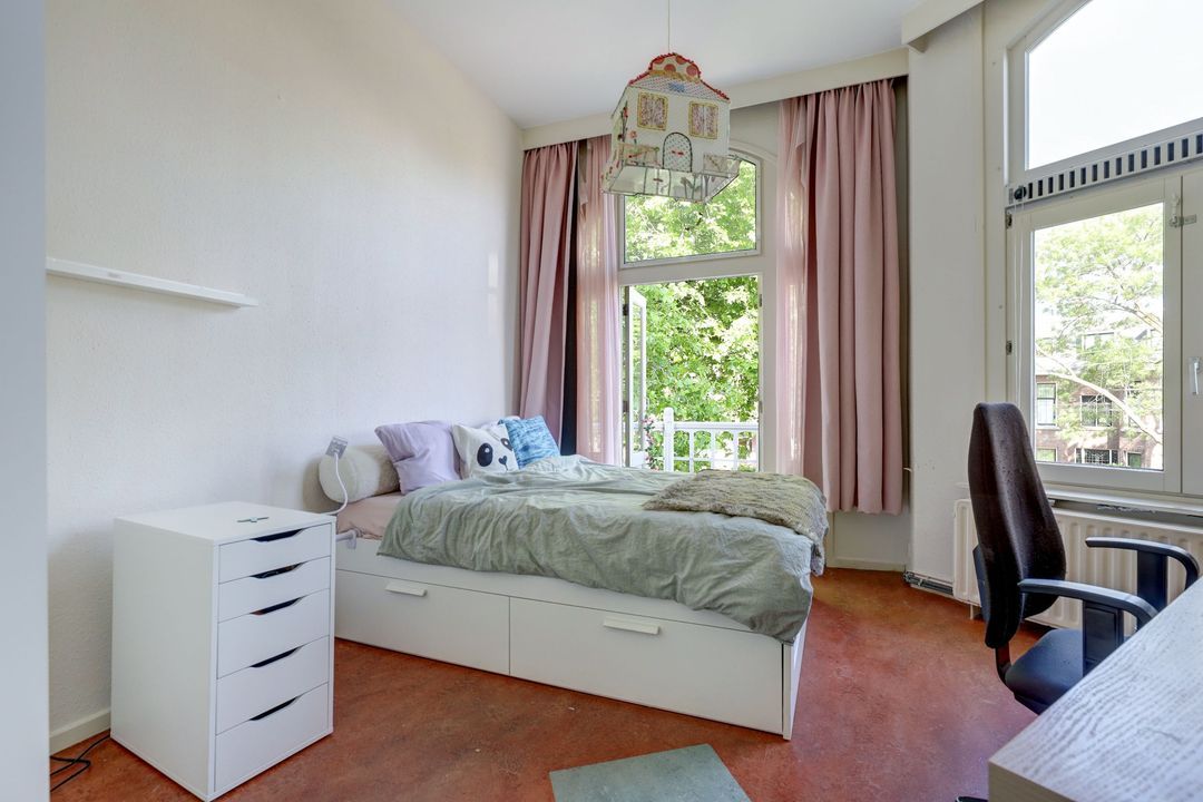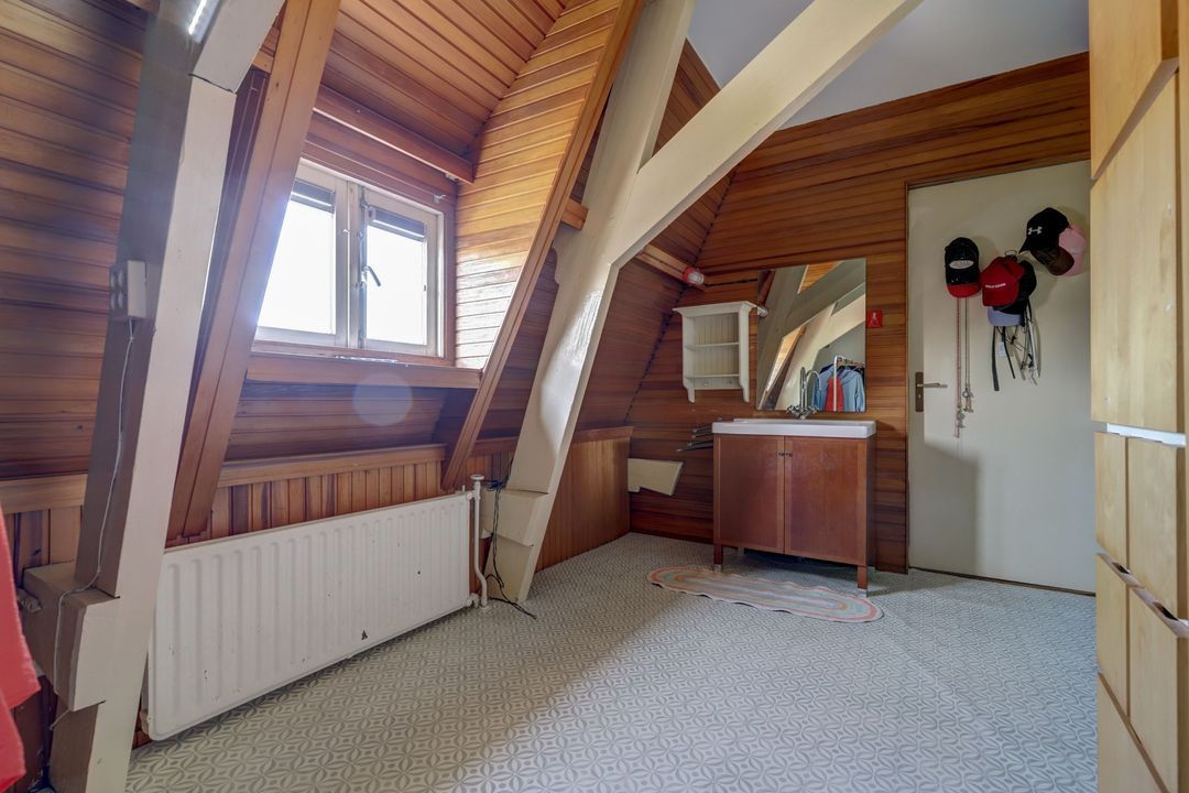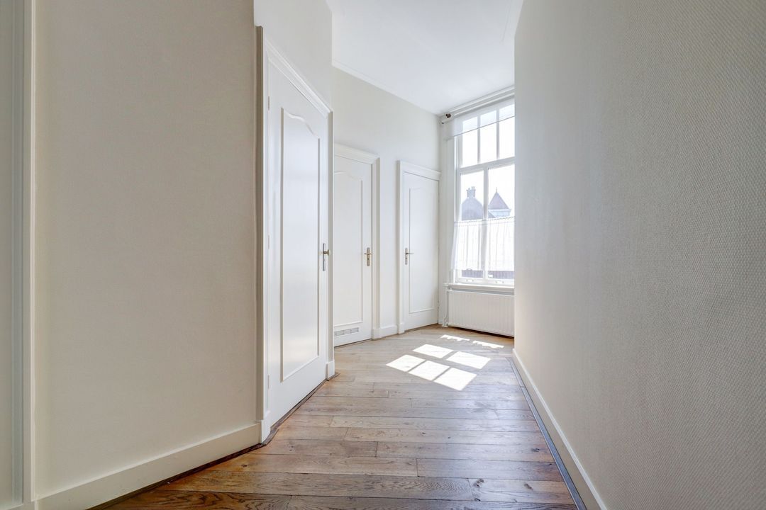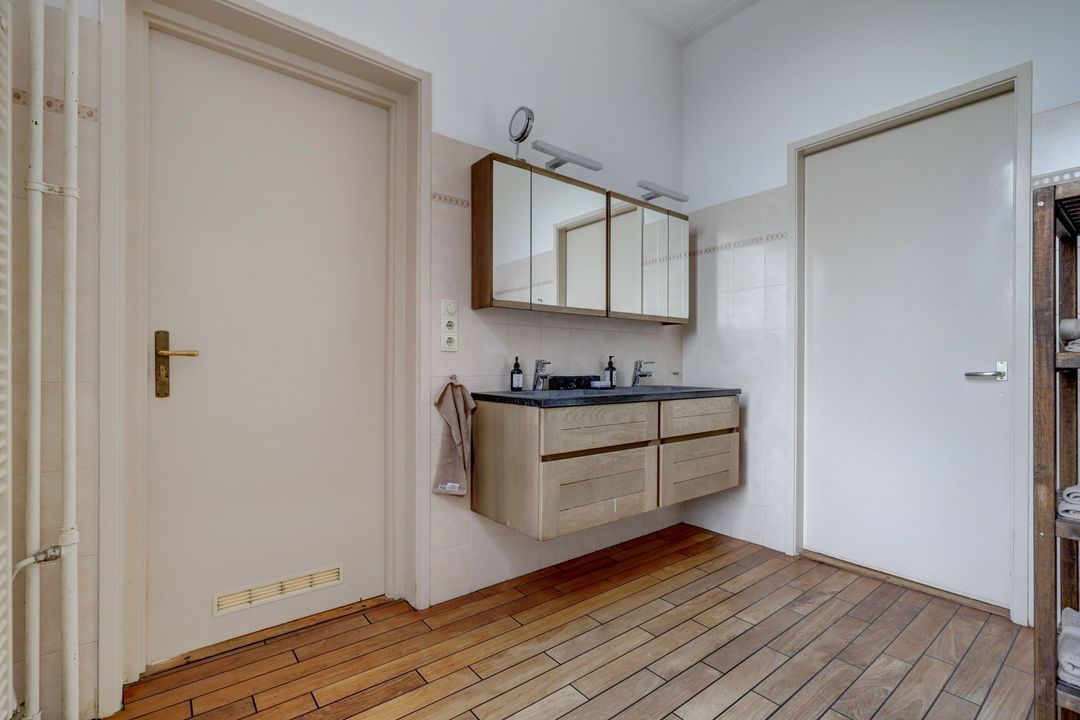 Aan de achterzijde ligt de voormalige dienstbodekamer. Verder zijn er nog twee zeer ruime slaapkamers, opnieuw met vaste kasten en fraaie lichtinval. Een tweede badkamer met dubbele wastafels, ruime douche en aansluiting voor wasmachine en droger maakt deze verdieping compleet. Via een vaste trap bereikt u het platte dak met dus een goede mogelijkheid om zonnepanelen te plaatsen.