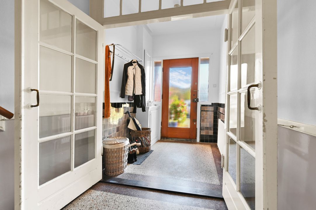 Via de entree aan de voorkant komt u de woning binnen. De hal geeft toegang tot de meterkast, het toilet en de trap naar de eerste verdieping. Vanuit hier loop t u door naar de leefruimtes. Direct vallen de prettige plafondhoogte van 3 meter en de authentieke stijldetails op. Deze zorgen voor een warme en karaktervolle sfeer.
