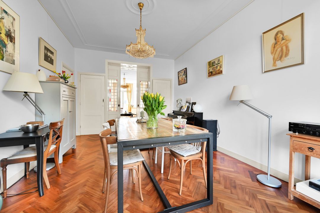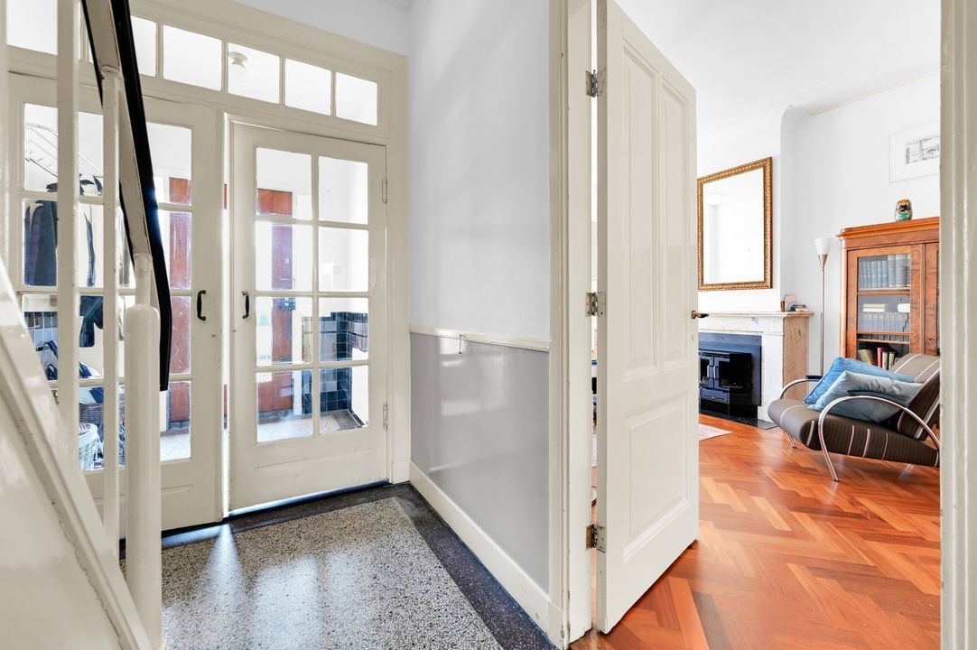 You enter the property through the front entrance. The hallway provides access to the meter cupboard, the toilet, and the staircase to the first floor. From here, you continue to the living areas. The pleasant ceiling height of 3 metres and the authentic period details immediately stand out, creating a warm and characterful atmosphere.