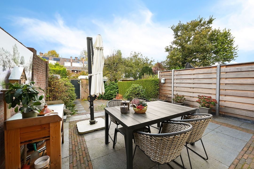 - fraaie, zonnige achtertuin met achterom