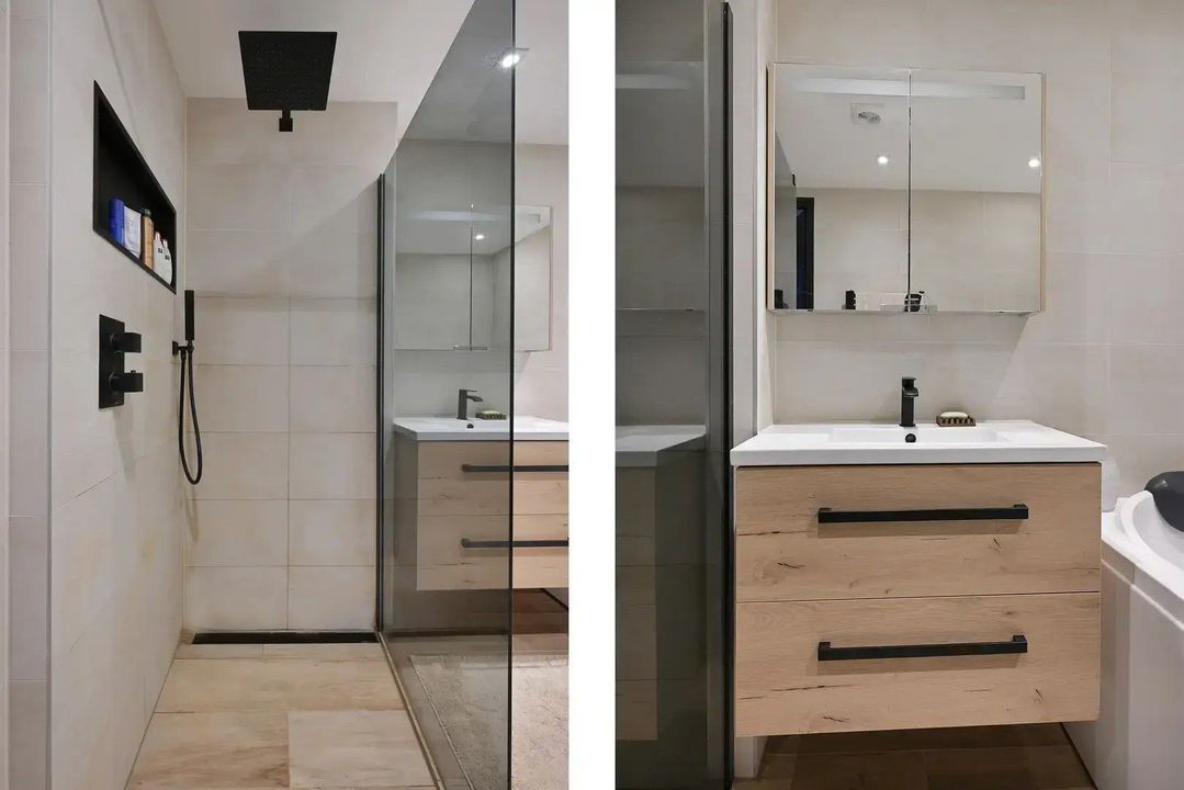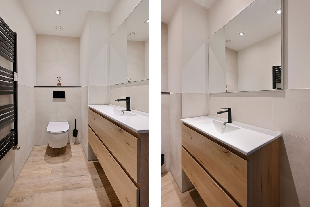 De badkamer (ca. 5,4 m²) is modern uitgevoerd en voorzien van een elektrische handdoekradiator met WiFi-bediening via een app. Het separate toilet (ca. 2,6 m²) was voorheen de badkamer en is nu extra ruim uitgevoerd met een groot wasmeubel. Op onder andere het Geberit inbouwreservoir zit nog garantie (facturen aanwezig).