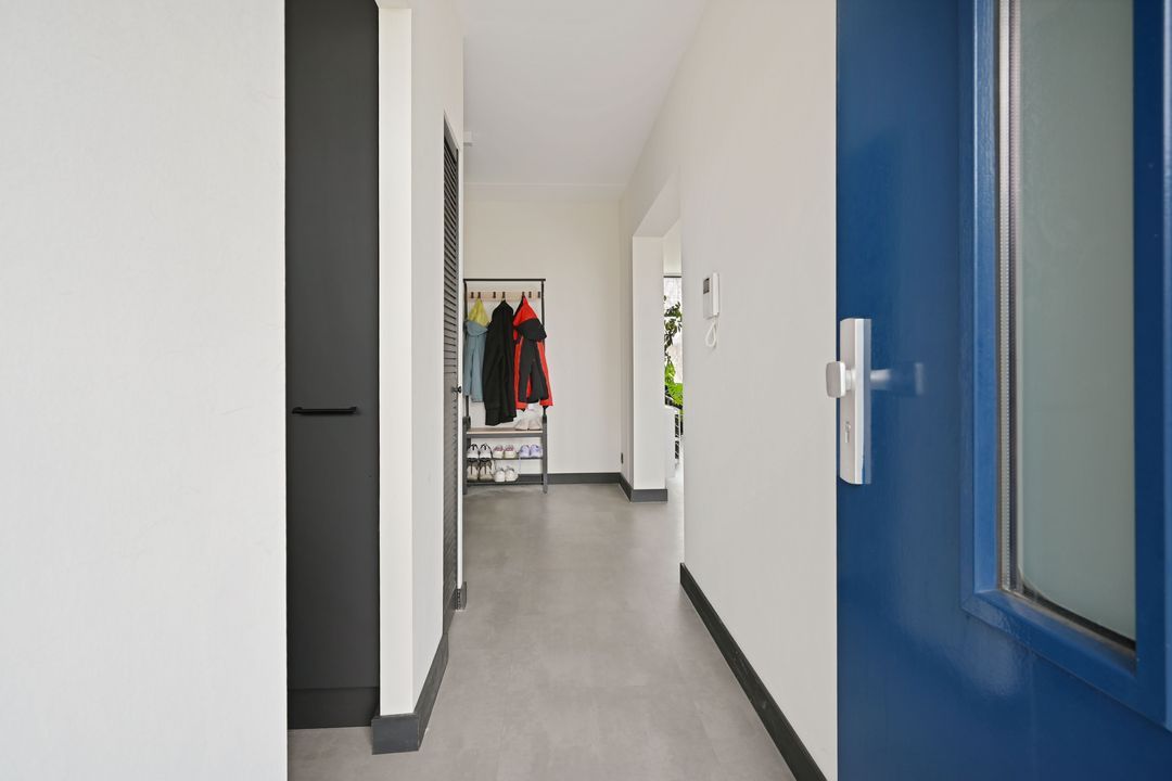 Nette afgesloten entreeruimte met lift en trappenhuis. Via de centrale entree betreedt u het appartement, waar direct de hoogwaardige afwerking en slimme indeling opvallen. In de hal bevindt zich een aparte garderoberuimte, diep genoeg om eventueel een droger te plaatsen indien deze wordt afgesloten als kast.