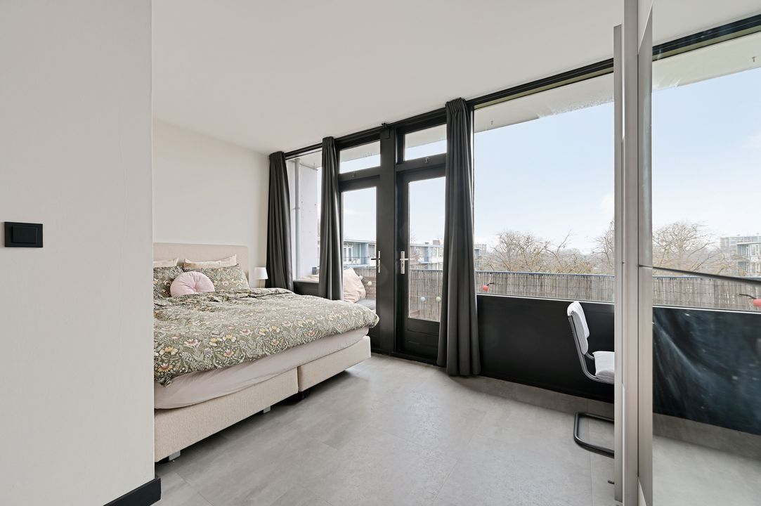 De slaapkamer (ca. 13,9 m²) ligt aan de balkonzijde en biedt directe toegang tot het balkon. Deze kamer is bijzonder rustig gelegen, zonder bovenburen en met aangrenzende ruimtes zoals de lifthal en de eigen woonkamer, wat zorgt voor minimale geluidsoverlast. Ook hier is airconditioning aanwezig.