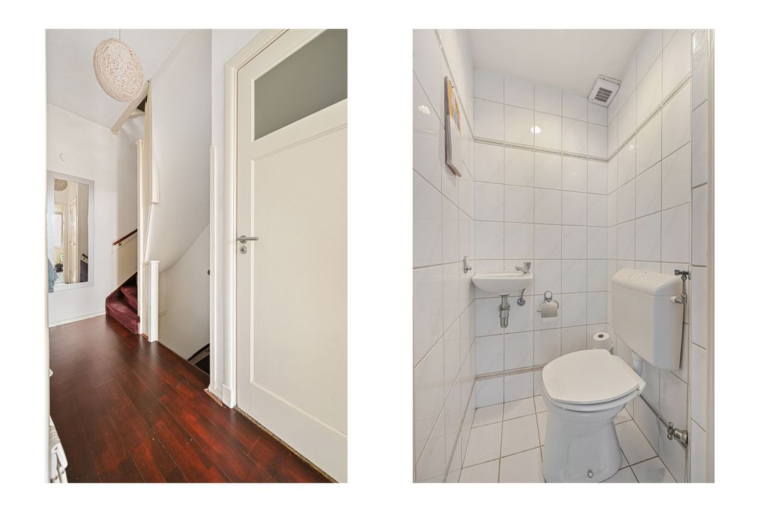 Via de entree komt u in de hal met separaat toilet. De woon- / eetkamer heeft een totale lengte van ruim 10 meter en is prettig en functioneel ingedeeld. Aan de voorzijde bevindt zich de lichte woonkamer van ca. 18,2 m², met grote raampartijen, vrij uitzicht en een prettige plafondhoogte. De woonkamer en eetkamer worden met elkaar verbonden door een tussenruimte van ca. 5,5 m², die zich uitstekend leent als extra zitplek of werkhoek.