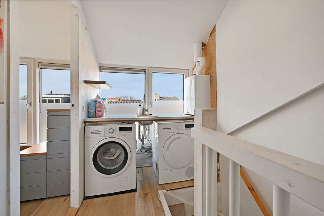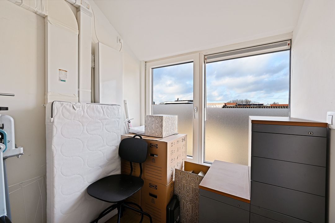 2e verdieping: Dankzij de opbouw van de 2e verdieping is hier een uiterst functionele volwaardige woonlaag ontstaan met zelfs nog 2 extra slaapkamers (resp. ca. 2,9 x 1,7 en 2,1 x 3,6 m). Overloop met aansluiting voor de wasmachine, droger en CV-ketel. Tevens kan hier extra bergruimte gecreƫerd worden (vliering boven trapgat).