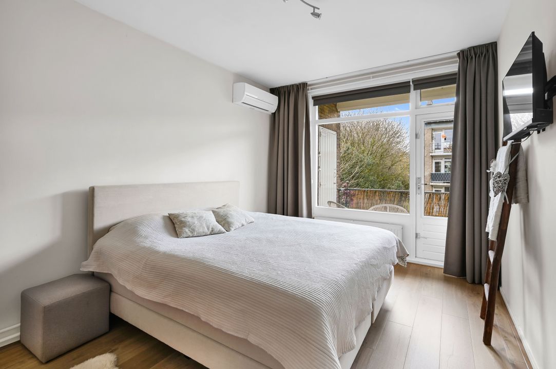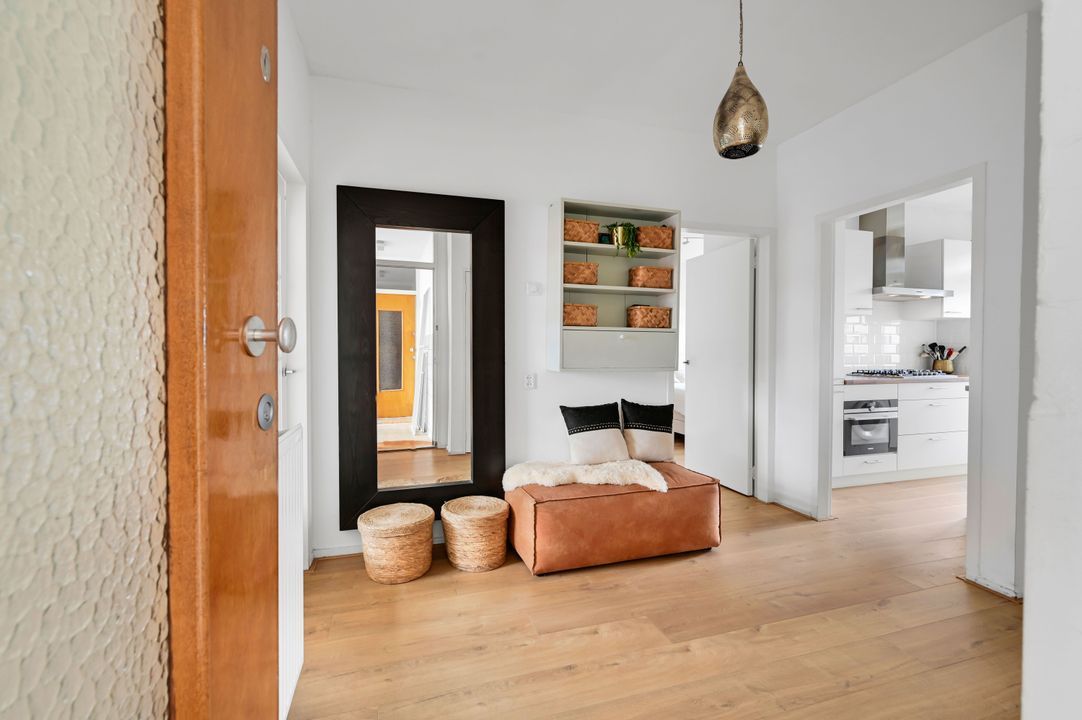 Via het portiek bereikt u de woning. De ruime hal vormt het centrale punt en geeft toegang tot alle vertrekken. De woonkamer van ca. 6,53 x 4,07 m is opvallend licht en ruim opgezet. Deze ruimte is ontstaan door het samenvoegen van kamers en biedt daardoor een open en comfortabele leefomgeving met voldoende plek voor zowel een zit- als eethoek. Indien gewenst is hier relatief eenvoudig weer een extra kamer te realiseren. De keuken van ca. 3,43 x 1,86 m is modern uitgevoerd in een lichte kleurstelling met een warm werkblad en voorzien van diverse inbouwapparatuur, waaronder een gaskookplaat, afzuigkap, oven, vaatwasser en koel-/vriescombinatie. Vanuit de keuken is er directe toegang tot het balkon van ca. 5,7 m², gelegen op het zuidwesten (!!) waar u prettig buiten kunt zitten. Aan de achterzijde bevindt zich de hoofdslaapkamer van ca. 4,38 x 3,17 m, een rustige en ruime kamer met toegang tot het balkon. De tweede slaapkamer van ca. 3,43 x 2,86 m is eveneens goed bemeten en geschikt als werk-, kinder- of logeerkamer. De badkamer is modern en verzorgd uitgevoerd met een douche en wastafelmeubel. Het toilet is separaat gesitueerd.