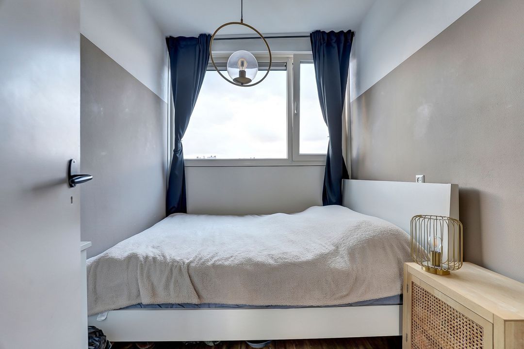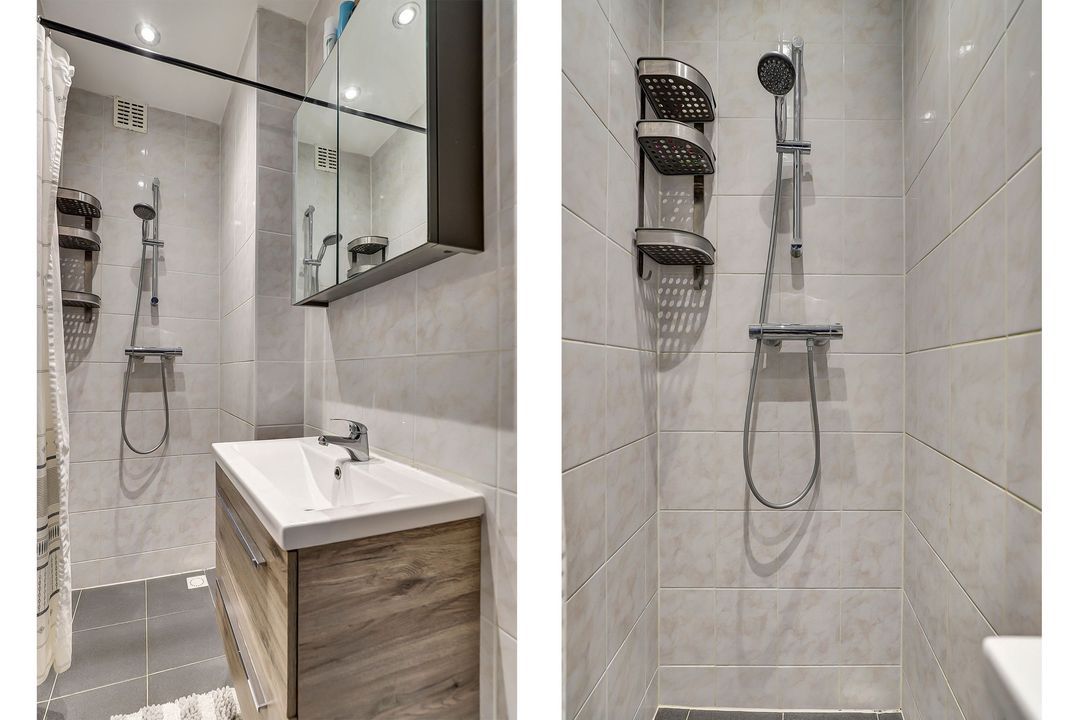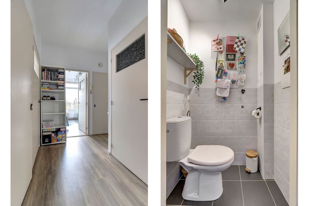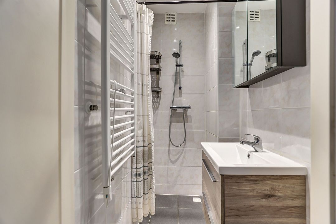 De woning beschikt over twee slaapkamers, waarvan één met grote raampartij en vaste kastenwand. De badkamer is modern betegeld en voorzien van een douche, wastafelmeubel en handdoekradiator. Separaat toilet met fonteintje.
