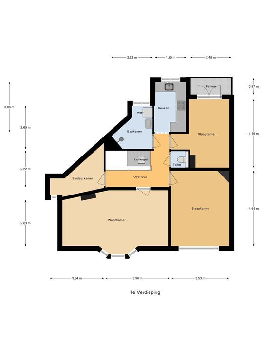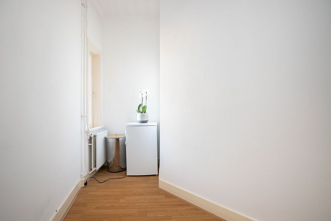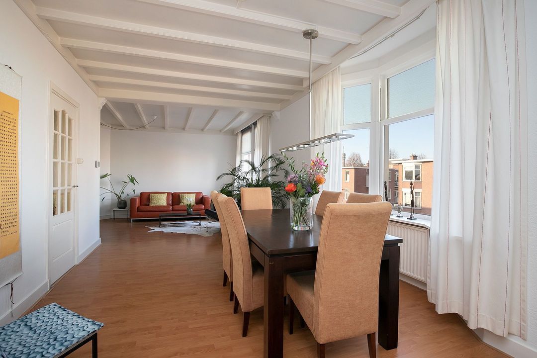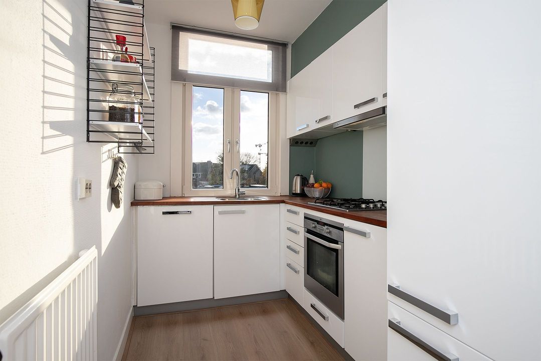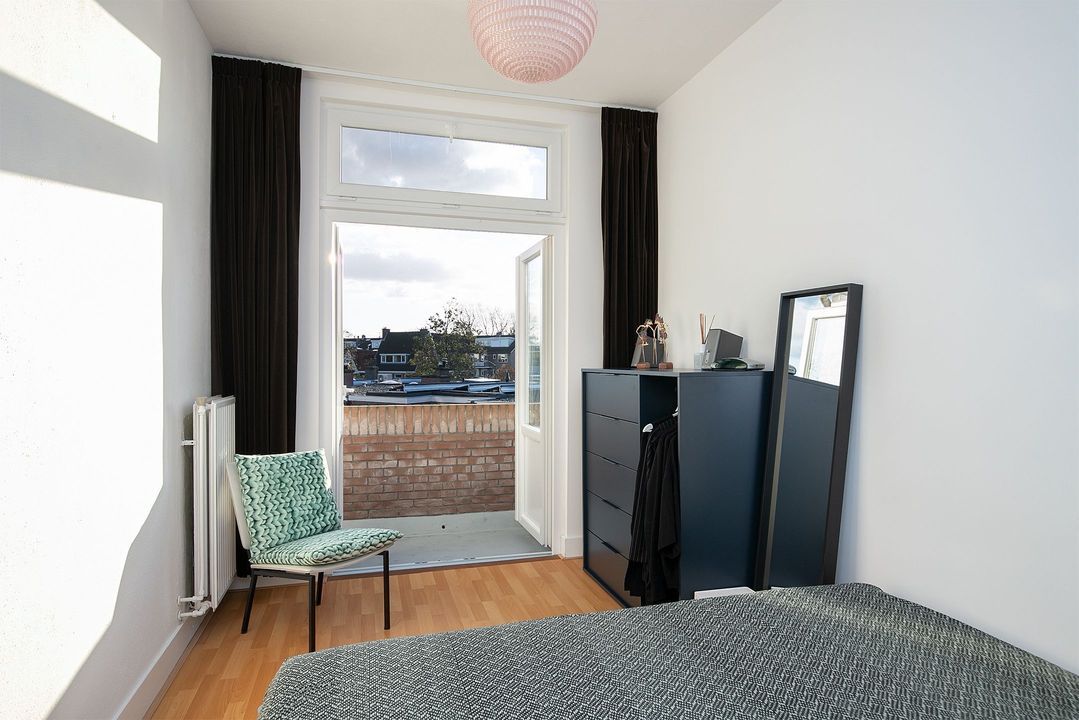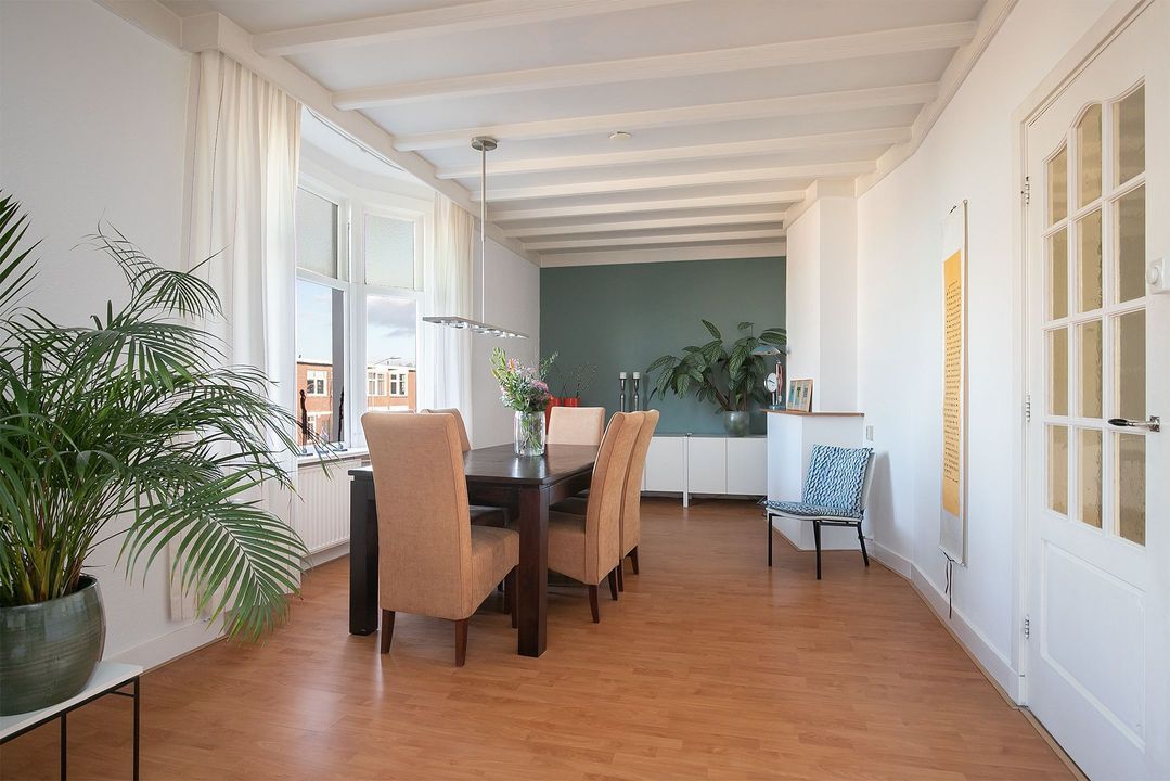 2e Verdieping: Ruime en lichte overloop met lichtkoepel. Modern toilet met wandcloset. Riante en heerlijk brede woon-eetkamer van met erker en vrij uitzicht over de directe omgeving. Grote hoofdslaapkamer (4.64 x 3.53m). Mooie strak afgewerkte moderne keuken in een L-opstelling met inbouwapparatuur, te weten: 4 pits gaskookplaat, combi oven, afzuigkap, koelkast en vaatwasmachine. Grote slaapkamer (ca. 4.19 x 2.49 m) aan de achterzijde met openslaande deuren naar het zonnige achterbalkon. Moderne badkamer met trendy douche met thermostaatkraan en glazen douchewand, modern wastafelmeubel en aansluiting wasmachine aansluiting. Het balkon ligt op het zuidwesten met vrij uitzicht. Klein studeerkamer (ca. 3.28 x 2.78 m).