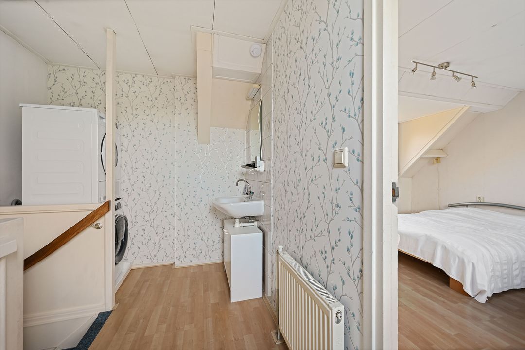 De tweede verdieping heeft een ruime overloop waar de wasruimte is gerealiseerd met een fontein en aansluiting voor de wasmachine en droger. Vanaf de overloop is het royale dakterras toegankelijk, alwaar in alle privacy van de middag- en avondzon genoten kan worden. Op deze verdieping is een ruime vijfde slaapkamer (ca. 3,8 x 4,0 m) met vaste kastruimte.