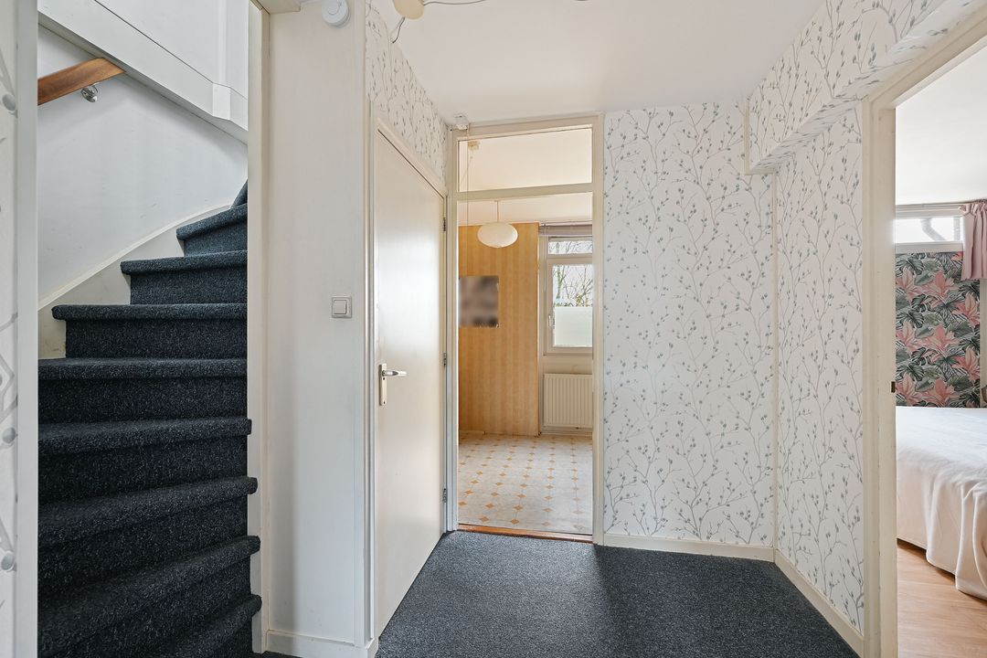 De woning ligt aan een autoluw looppad. Via de voortuin betreed je de woning in de hal met meterkast, toilet en toegang tot de inpandige berging (die ook weleens wordt doorgebroken om een ruimte entree te realiseren). Aan de voorzijde bevindt zich de keuken, met een L-vormige opstelling uitgevoerd in lichte kleuren en voorzien van diverse inbouwapparatuur. Hiervandaan is er prettig uitzicht over het looppad aan de voorzijde van de woning. De ruime woonkamer (ca. 6,1 x 4,2 m) ligt over de volledige breedte aan de achterzijde en is dankzij de grote raampartijen heerlijk licht. Vanuit de woonkamer is er direct toegang tot de verzorgde achtertuin. De opvallend ruime achtertuin (diepste punt ruim 12 meter) is heerlijk vrij gelegen en beschikt daarmee over veel zonuren en privacy.