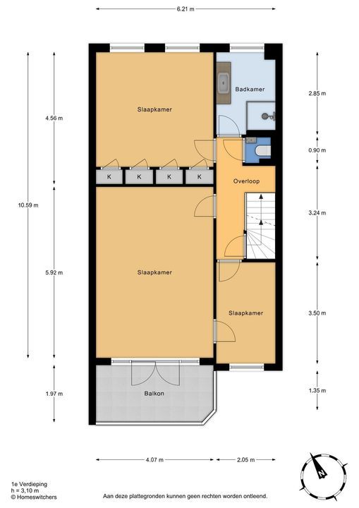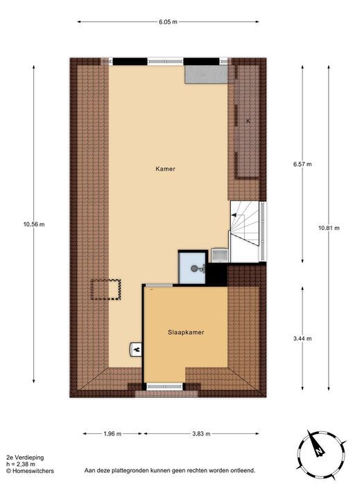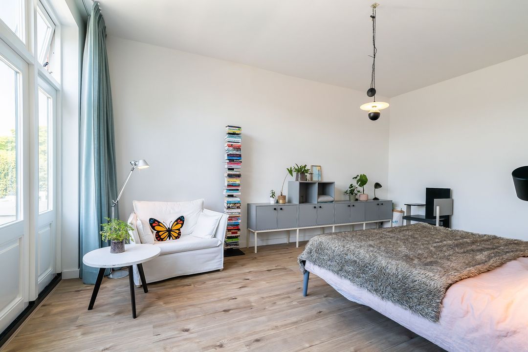 Tweede verdieping: Nu in gebruik als compleet appartement maar meerdere kamers mogelijk.