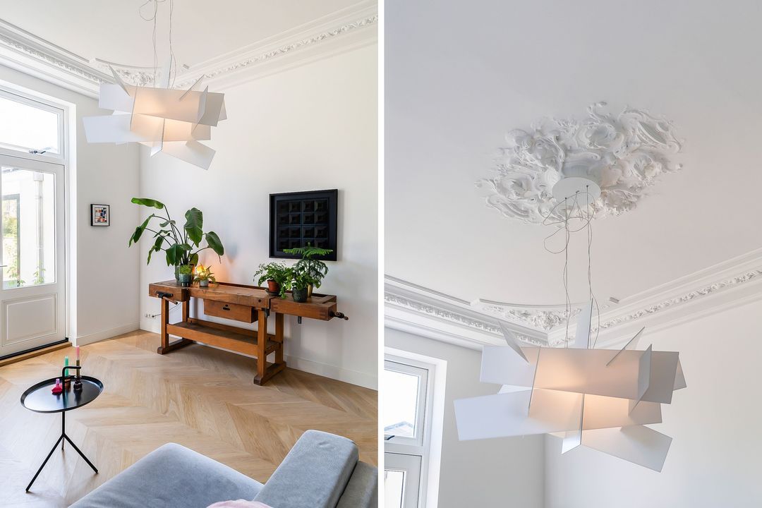 - woonkamer met waarschijnlijk mooiste plafond van Voorburg;